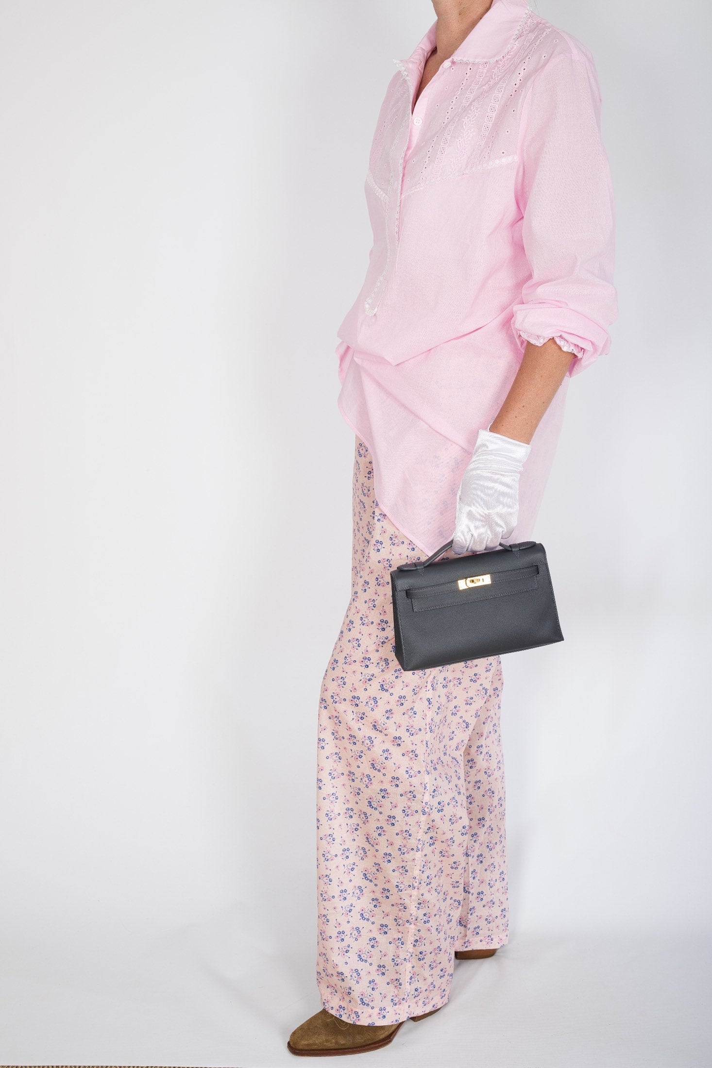 The Hermès Kelly Pochette in Ardoise Swift leather with Gold Hardware is a masterclass in understated elegance. Newly released for 2025, this refined clutch showcases the deep, sophisticated charcoal tones of Ardoise—a nuanced grey that transitions seamlessly from day to evening. The buttery-soft Swift leather offers a luxurious handfeel, allowing the subtle sheen of the gold hardware to stand out as a warm, luminous counterpoint. Compact yet impeccably structured, the Kelly Pochette distills the iconic Kelly design into a sleek, handheld form, making it the perfect companion for both formal occasions and elevated everyday moments.