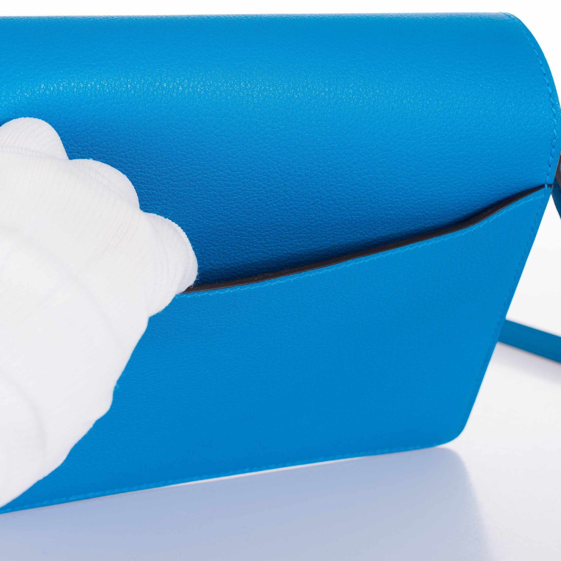 Another very special JaneFinds... Hermès Roulis Mini Bag in the most stunning Bleu Zanzibar! Made of Swift calf leather. Double top handles. Inside pocket with 4 compartments, flat back pocket. Shoulder strap with gold hardware.