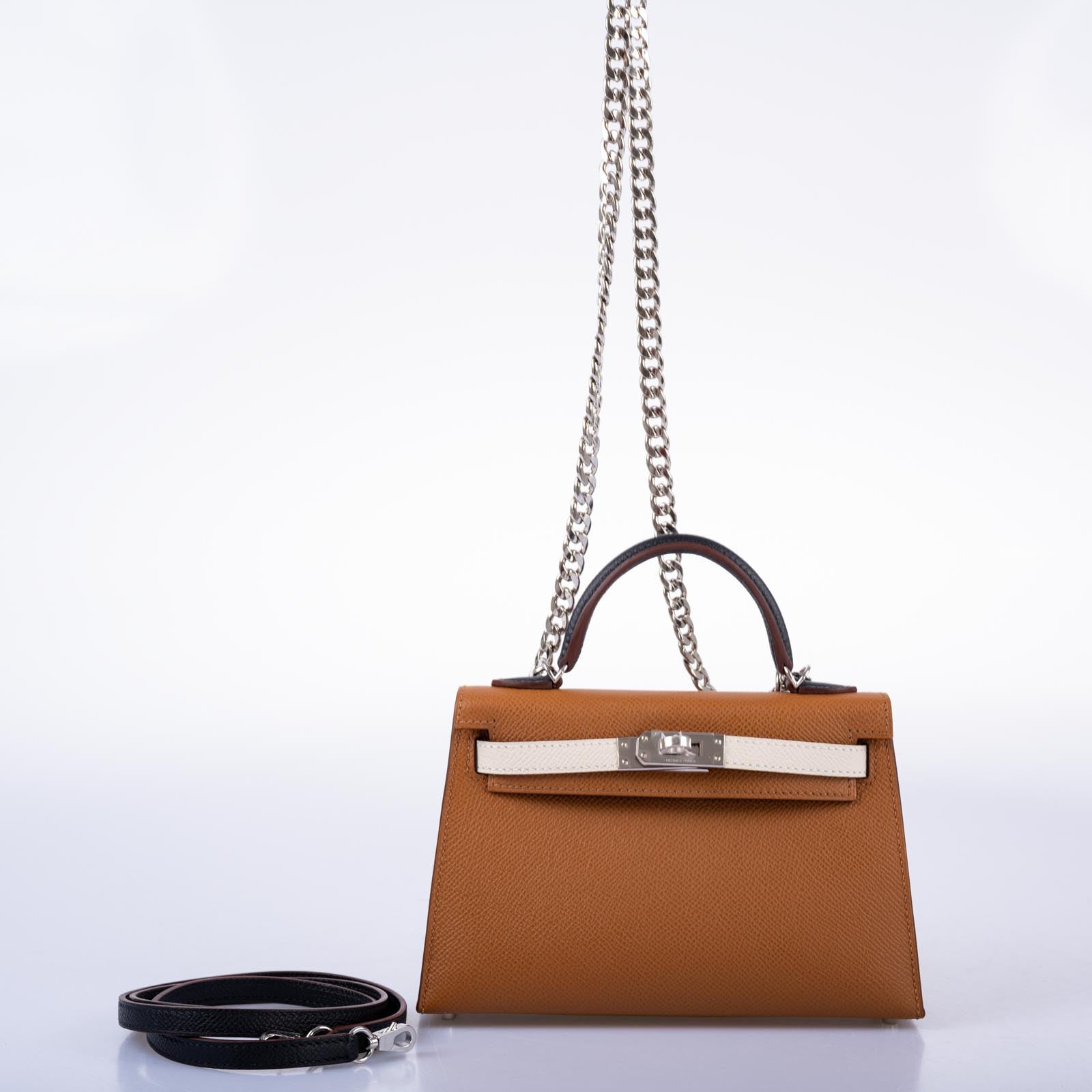 Dress it Up: The Tricolor Mini Kelly can elevate the most formal attire, adding a modern twist to an evening gown or a tailored suit. The palladium hardware catches the light, adding a flash of brilliance to any high-end occasion.