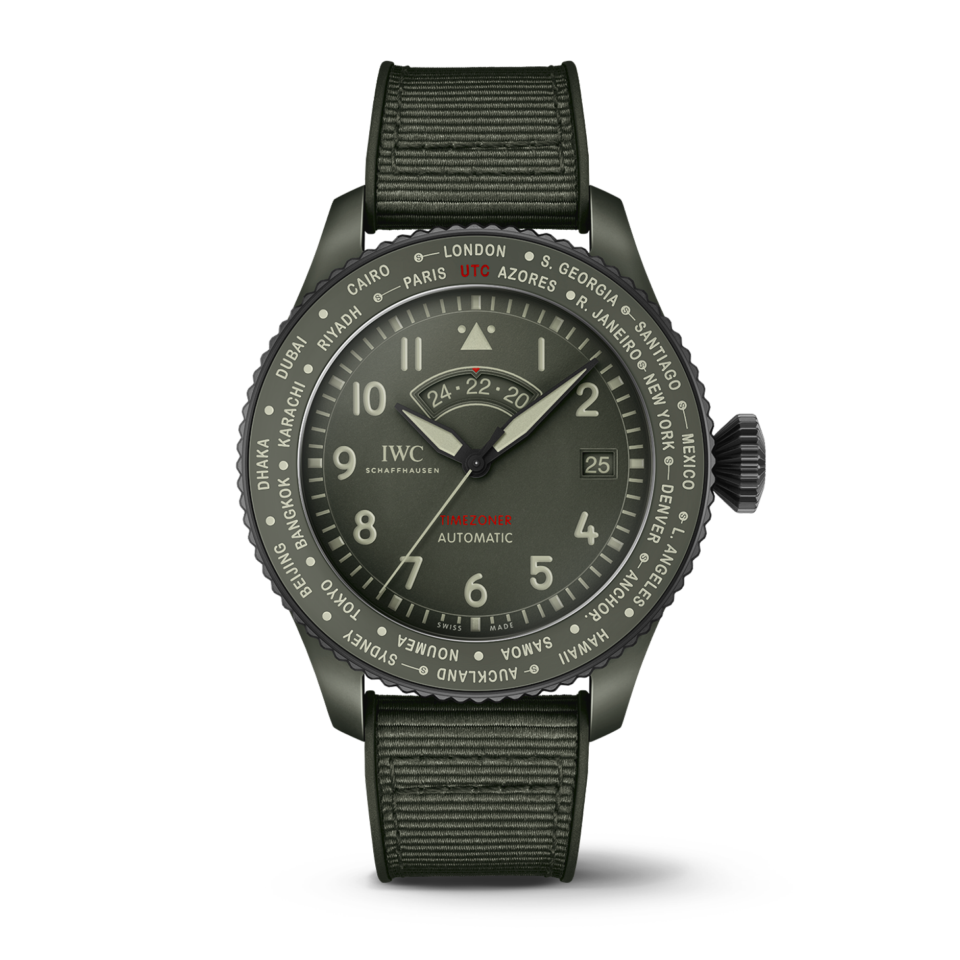 IWC Schaffhausen Pilot’s Watch Timezoner TOP GUN Woodland 46 mm Green Dial Ceramic Green Rubber Strap IW395601