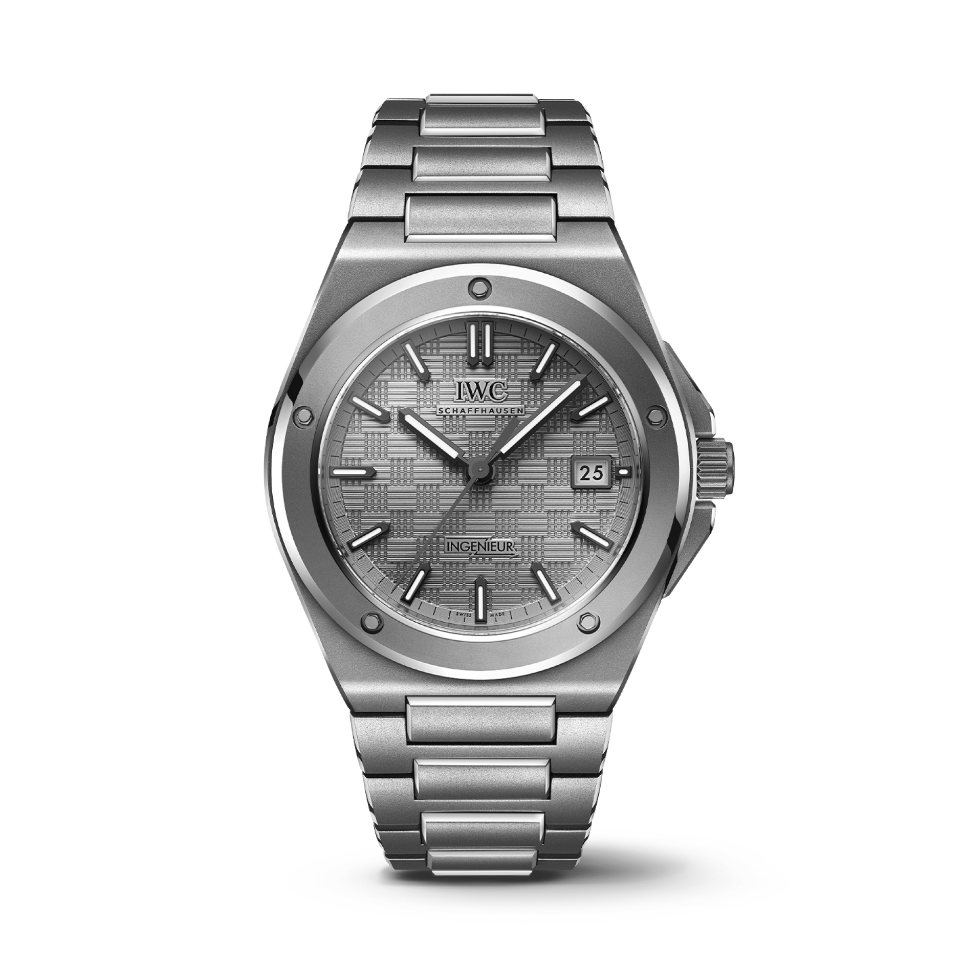 Although IWC introduced the Ingenieur in 1955, the name of this watch family is most frequently associated with Gérald Genta. During the 1970s, the legendary watch designer from Geneva created the Ingenieur SL, Reference 1832, detailing his artistic vision of a stainless steel luxury sports watch with an integrated bracelet. The Ingenieur Automatic 40 reflects the bold aesthetic codes of Genta’s iconic Ingenieur design while meeting the most exacting requirements regarding ergonomics, finishing, and technology. This model features a case, bezel and integrated H-link bracelet with butterfly folding clasp made of Grade 5 Titanium steel, all of which are elaborately finished with polished and satin-finished surfaces. Grade 5 titanium is about 45 percent lighter than steel but also incredibly hard to machine. The ergonomics of the case and bracelet have been carefully reworked and improved to the smallest detail. The 40-millimetre case and the newly engineered middle-link attachment ensure excellent wearability, even on a slender wrist. The characteristic round bezel is screwed onto the casing ring with five polygonal screws. The grey dial features the distinctive “Grid” structure, which consists of small lines offset to each other by 90 degrees. Black hands and appliques with luminescence ensure easy legibility. At work inside the case is the IWC-manufactured 32111 calibre, whose pawl winding system builds up a power reserve of 120 hours. In keeping with the technical heritage of the Ingenieur, a soft-iron inner case shields the movement from magnetic fields. The 10-bar water-resistant case and the newly designed crown protection make the Ingenieur Automatic 40 a fully versatile luxury sports watch for the 21st century.