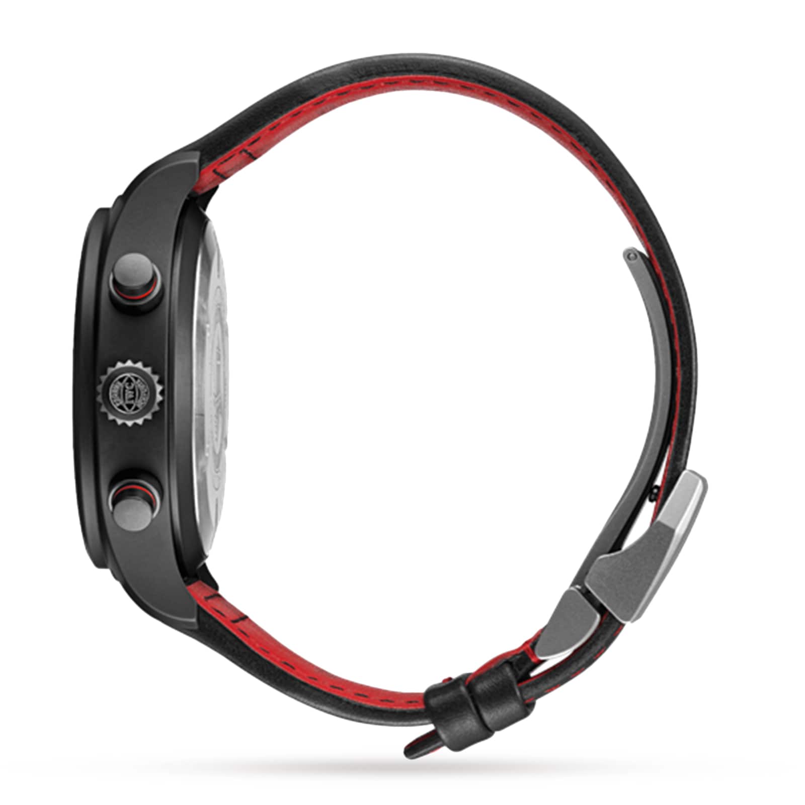 The Pilot’s range of IWC Schaffhausen watches was designed to meet the complex demands of timekeeping in the sky. While its inner mechanism ensures precision to the exact second, its comfortable strap and chic design make it the ideal fashion item. CASE Ceramic case Diameter 44.5 mm Height 15.7 mm Screw in crown Water resistance 6 bar MOVEMENT 69380 Calibre IWC-manufactured movement Automatic, self-winding 46 hours Power Reserve Frequency 28800.0 vph (4.0 hz) 231 Components 33 Jewels Côtes de Genève, perlage FEATURES Chronograph function with hours, minutes and seconds Soft-iron inner case for protection against magnetic fields Day and date display Glass secured against displacement by drop in air pressure Sapphire glass, convex, antireflective coating on both sides Small hacking seconds Annual production limit of 500 pieces