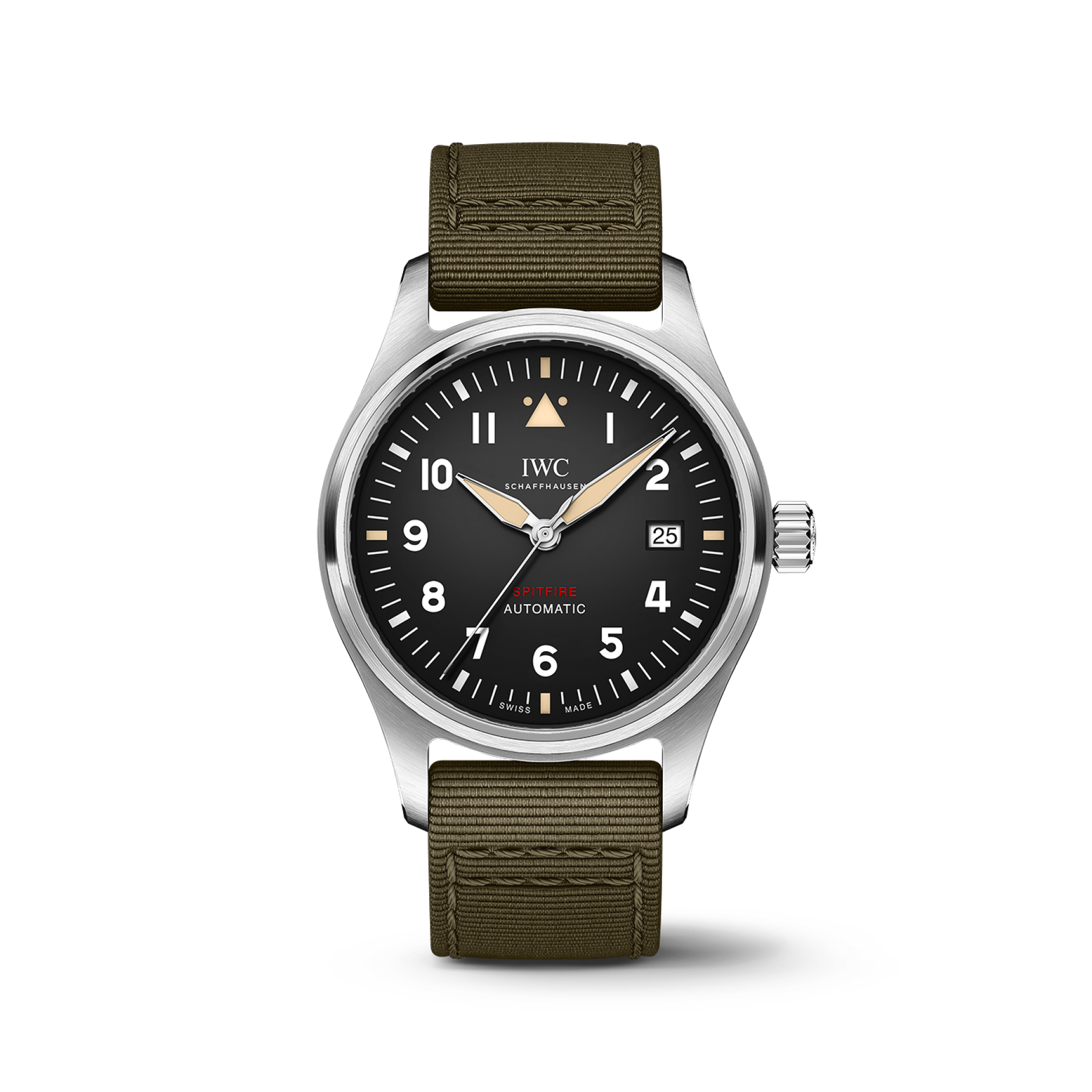 IWC Schaffhausen Pilot’s Watch Automatic Spitfire 39 mm Black Dial Stainless Steel Green Textile Strap IW326805