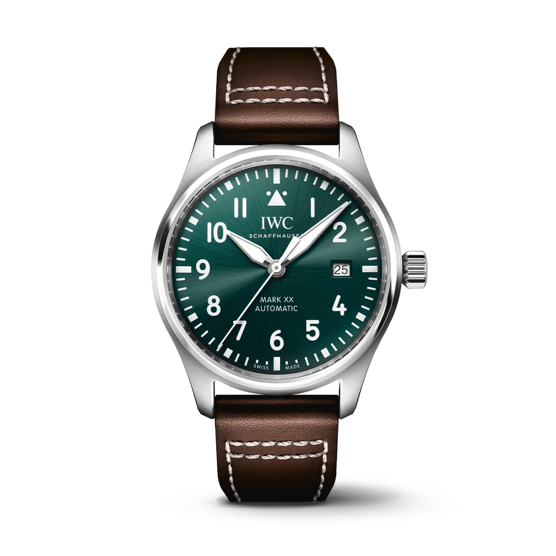 IWC Schaffhausen Pilot's Watch Mark XX 40 mm Green Dial Stainless Steel Brown Strap IW328205