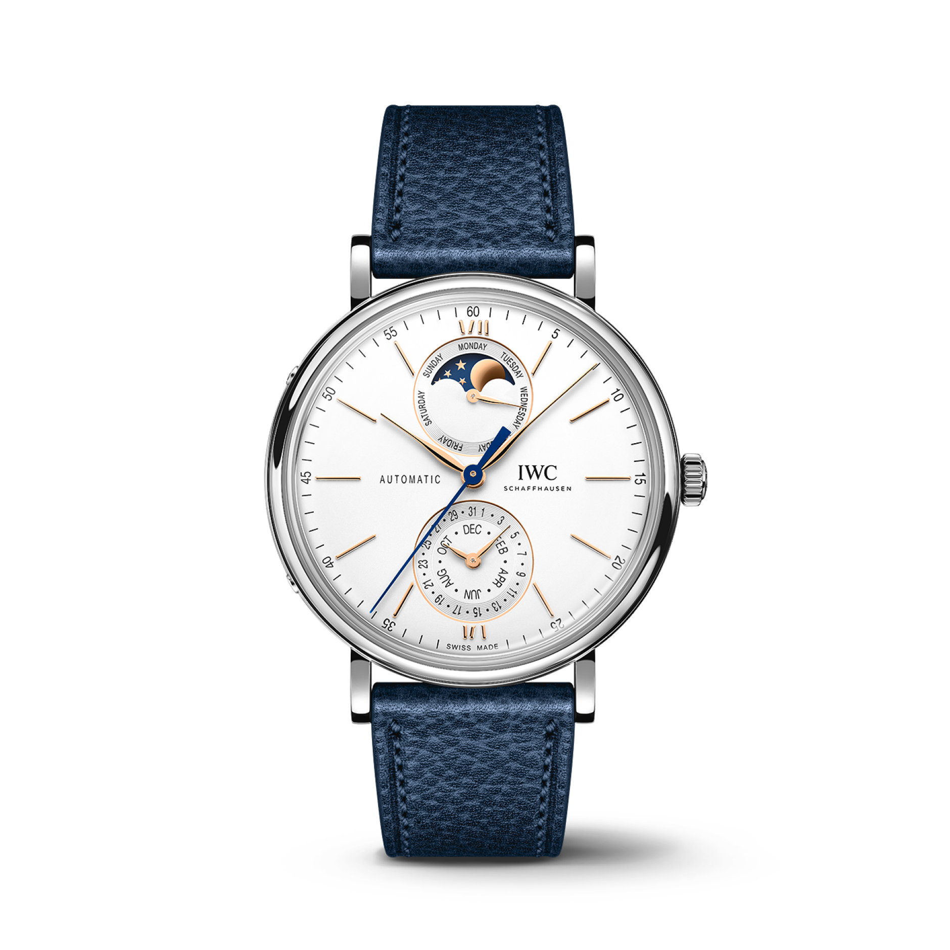 IWC Schaffhausen Portofino Complete Calendar 41 mm Silver Dial Stainless Steel Blue Strap IW359001