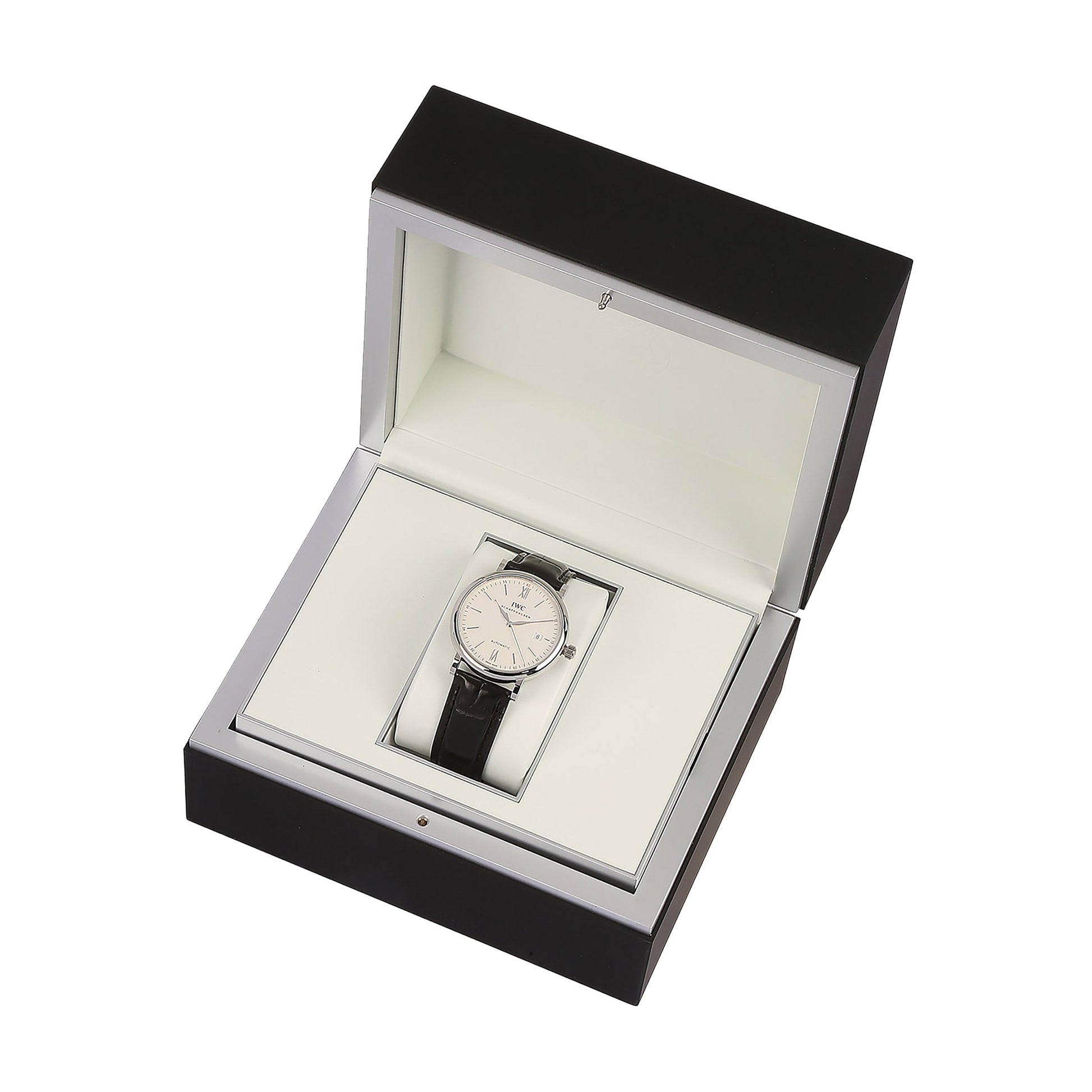 Powerful movement meets a laid-back aesthetic Confident and stylish Powered by the 35111 calibre automatic self-winding movement Presented in a 40mm stainless steel case secured with a black alligator leather strap Water resistant to 3 bar (30m) RELIABILITY UNDER ANY CONDITIONS Celebrating the IWC Schaffhausen vision of pairing impeccable Swiss precision with cutting edge technology, the Portofino collection epitomises timeless elegance. For over 30 years, the collection has effortlessly encapsulated the laid- back Mediterranean lifestyle with understated luxury. Confident and charming, the Portofino collection has become one of the most popular within the IWC family, showcasing a range of powerful and precise timepieces that radiate sophistication and style. LUXURIOUS DETAILS Timeless and graceful, this 40mm design encompasses a robust stainless steel case, paired with a harmonious cream dial with silver baton hour markers. Bold Roman numerals sit at the 12 and 6 o’clock positions with a discreet date window at 3 o’clock. The case is finished with an AR coating for crystal clear visibility and is perfectly paired with a sleek black alligator style leather strap. Powered by the 35111 calibre automatic self-winding movement, this robust timepiece is water resistant up to 3 bar (30 meters).