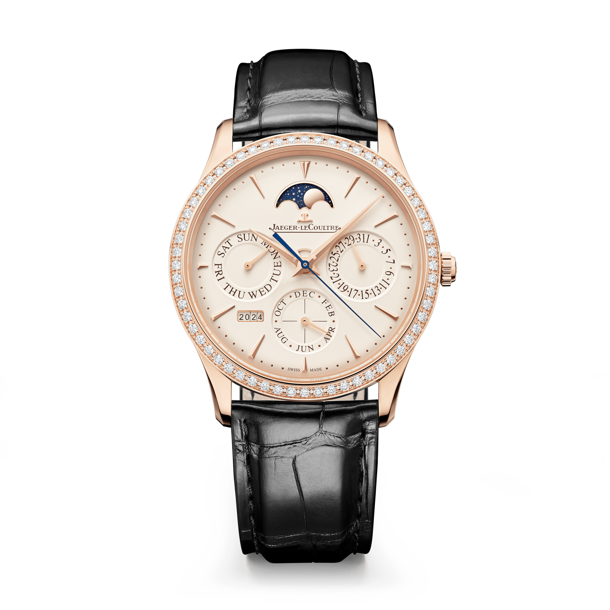 Jaeger-LeCoultre Master Ultra Thin Perpetual Calendar 39 mm Beige Dial with Diamonds Pink Gold Leather Strap Q1142501