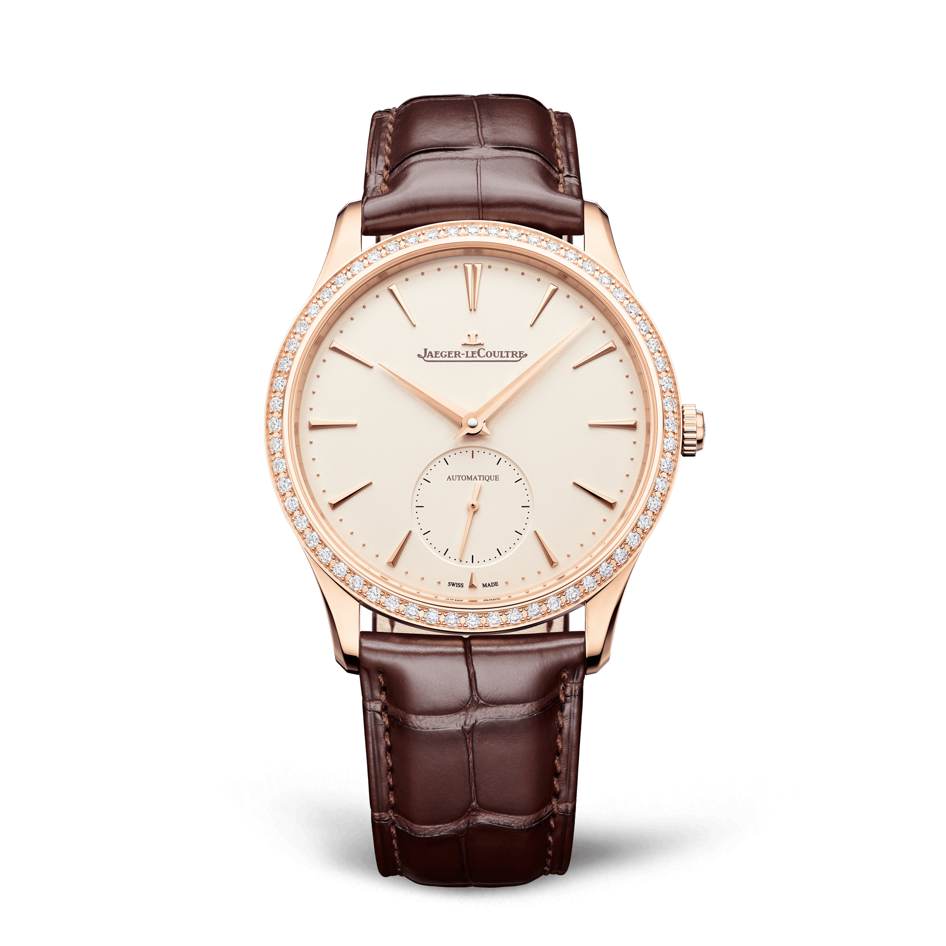 Jaeger-LeCoultre Master Ultra Thin Small Seconds 39 mm Beige Dial with Diamonds Pink Gold Leather Strap Q1212501