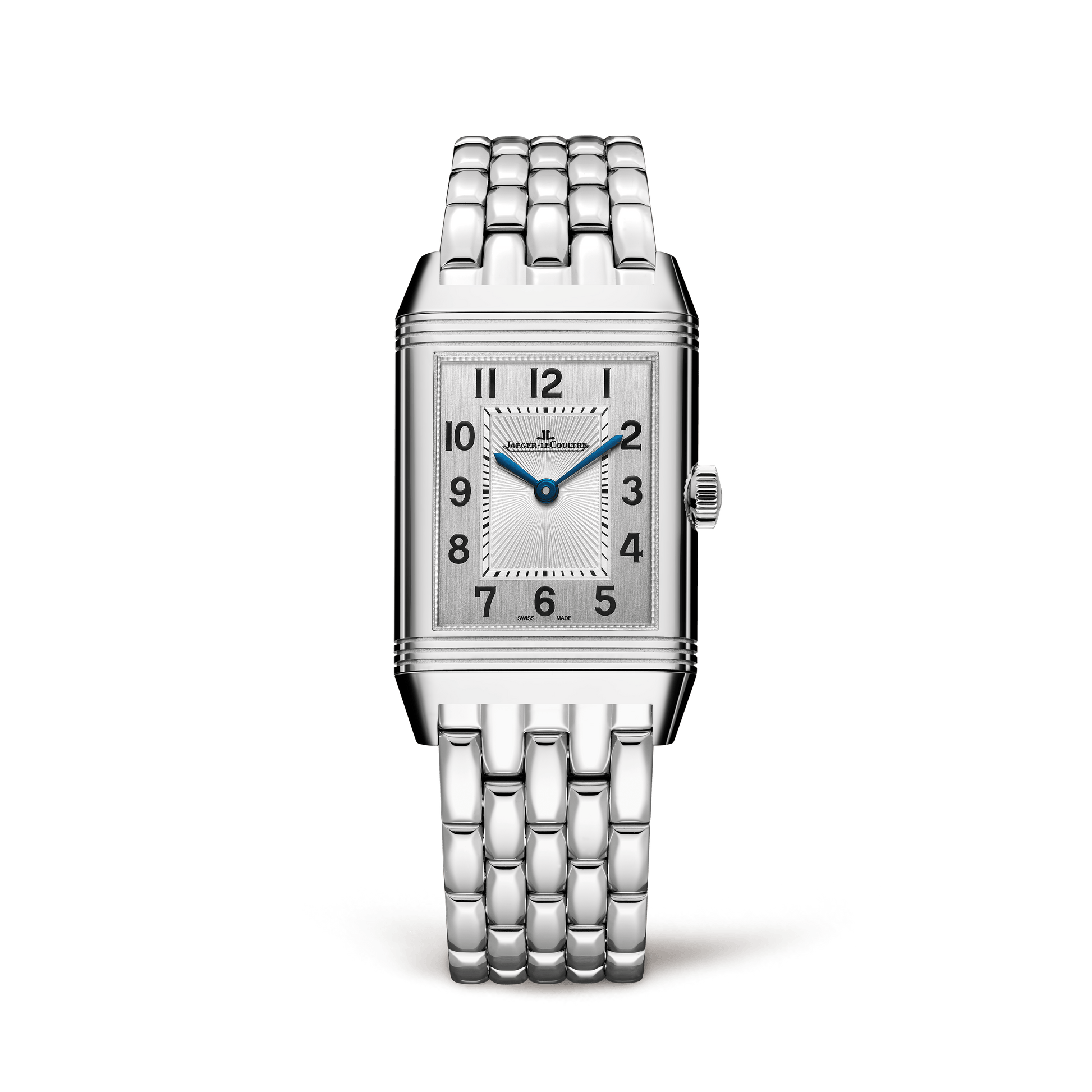 Two back-to-back dials provide two different faces that are driven by a single manually-wound mechanical movement. Therein lies the very essence of the stainless steel Reverso Classic Medium Duetto, which harbors this second, unsuspected facet like a secret within its case. Its stainless steel strap adds an additional touch of sophistication.