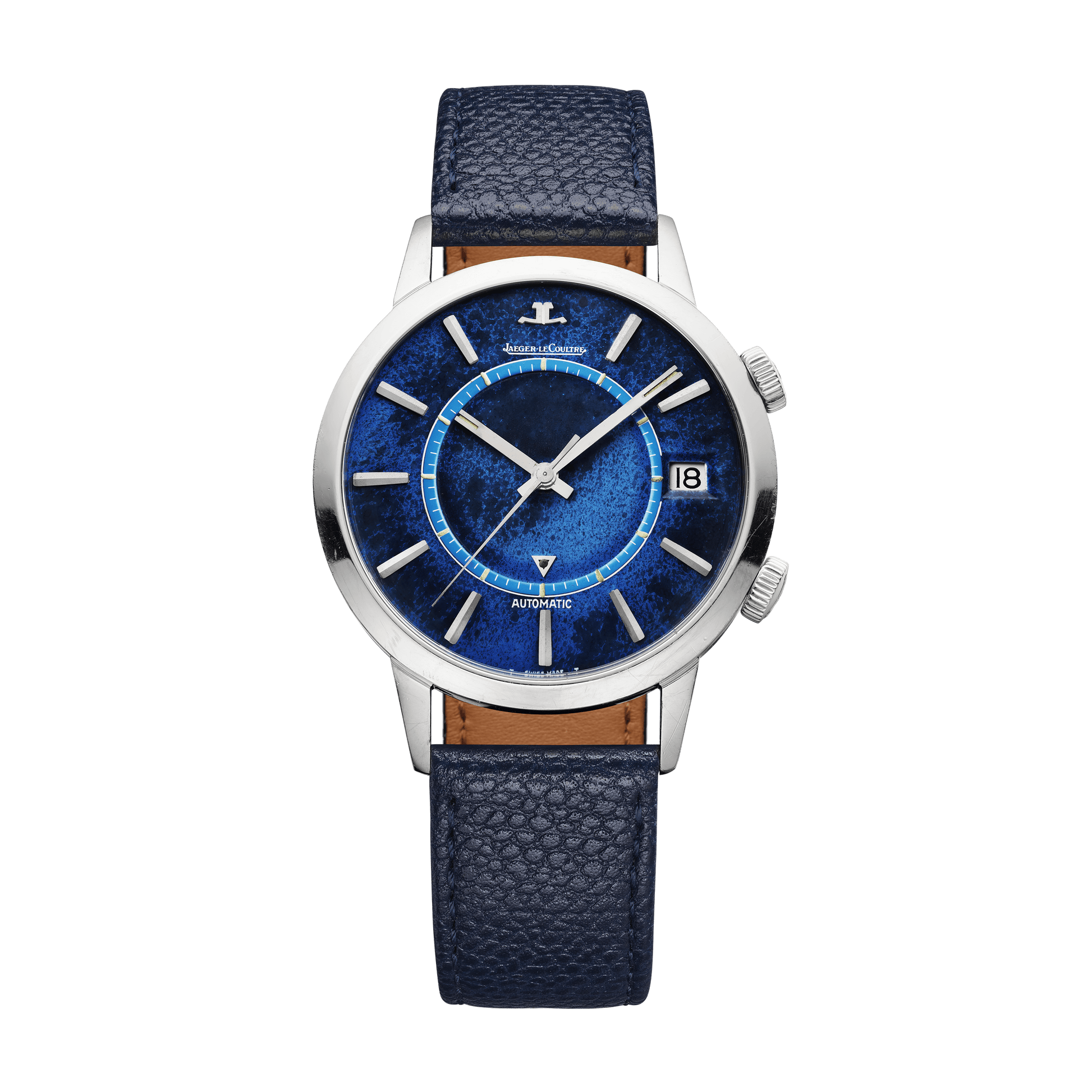 The watch is equipped with the self-winding Jaeger-LeCoultre Calibre 825 with alarm function and date display. It also features a new navy-blue strap.