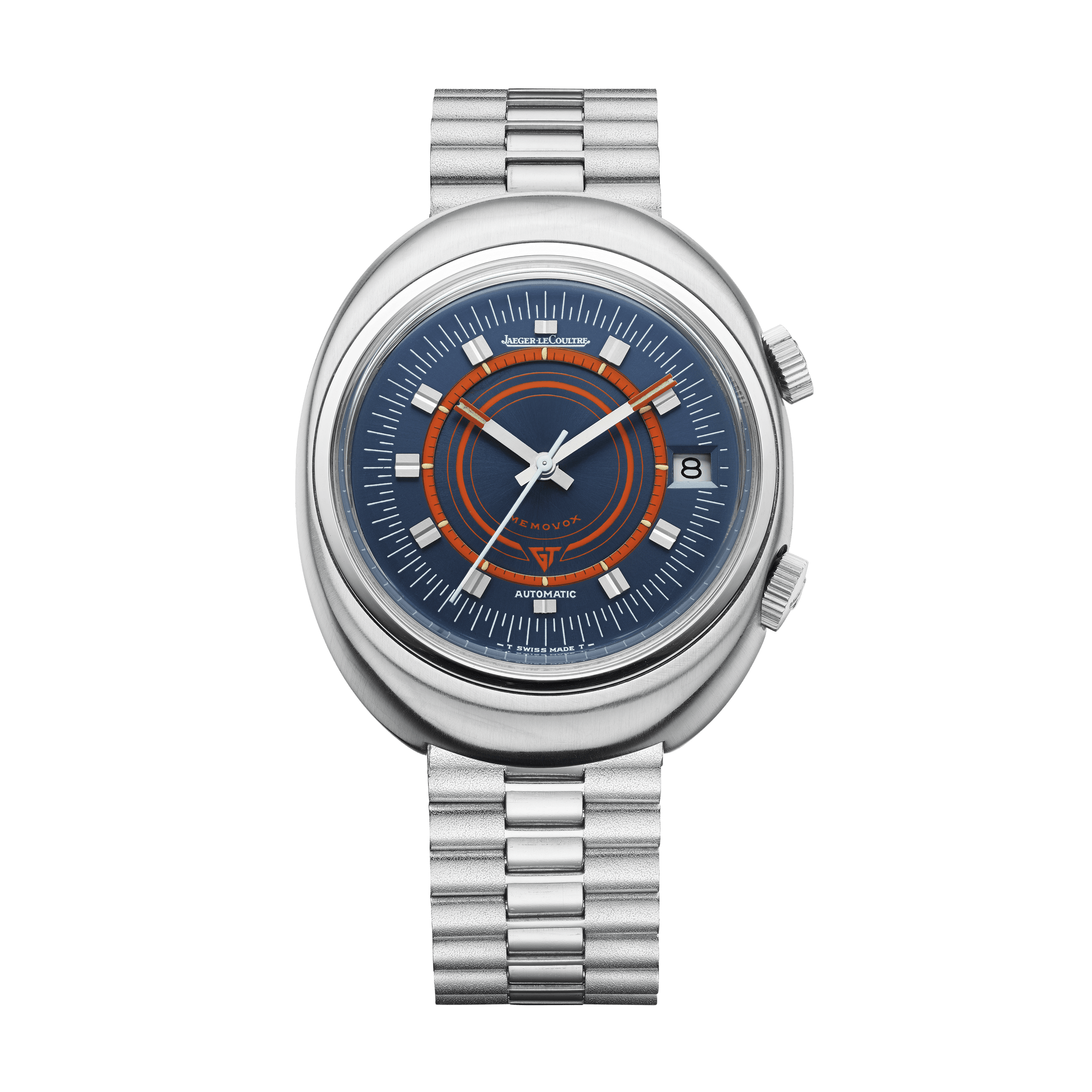 Equipped with the high-frequency Jaeger-LeCoultre Calibre 916 with date display, the watch features a stainless steel bracelet as well as a new blue strap.