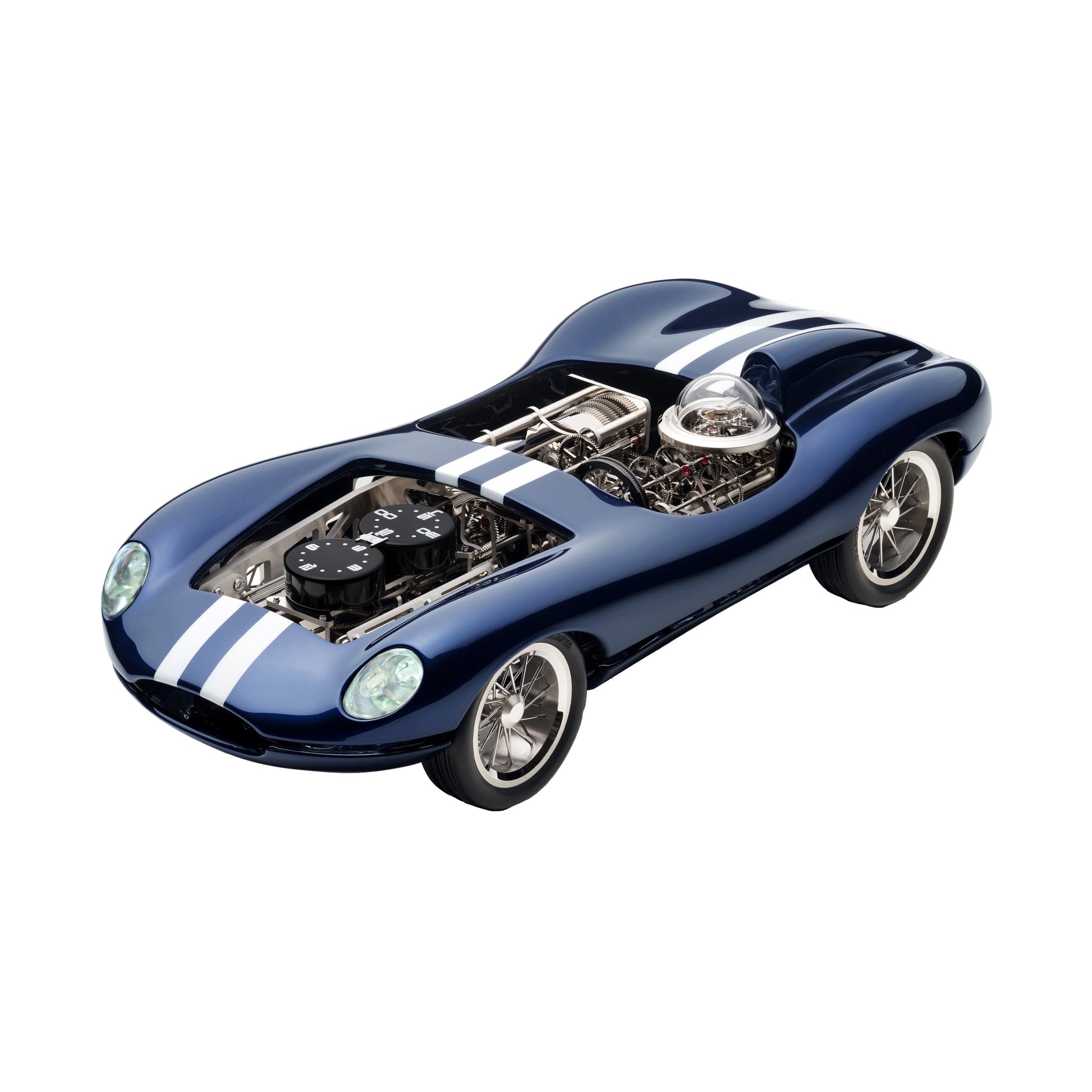 The name Time Fast II references the fact that it’s a 2-seater car, has two movements (one for time and one for the engine automate), racing cars are getting faster, modern time seems to be running faster, and it is L’Epée’s second car inspired clock.