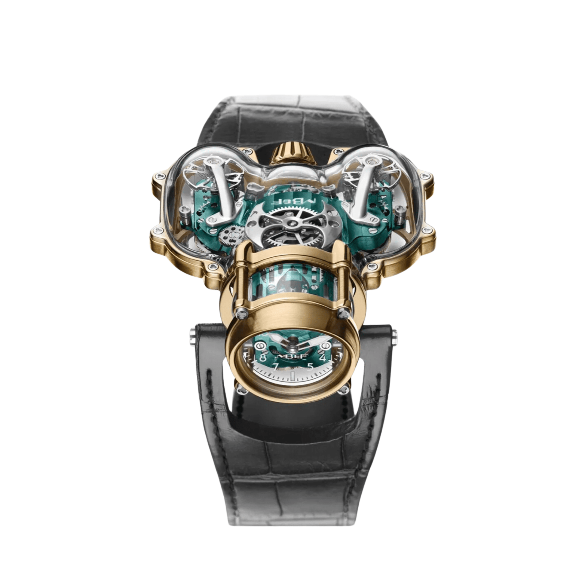 MB&F 91.SYL.GR Horological Machine No.9 'Flow' Sapphire Vision Yellow Gold Green Dial Limited Edition