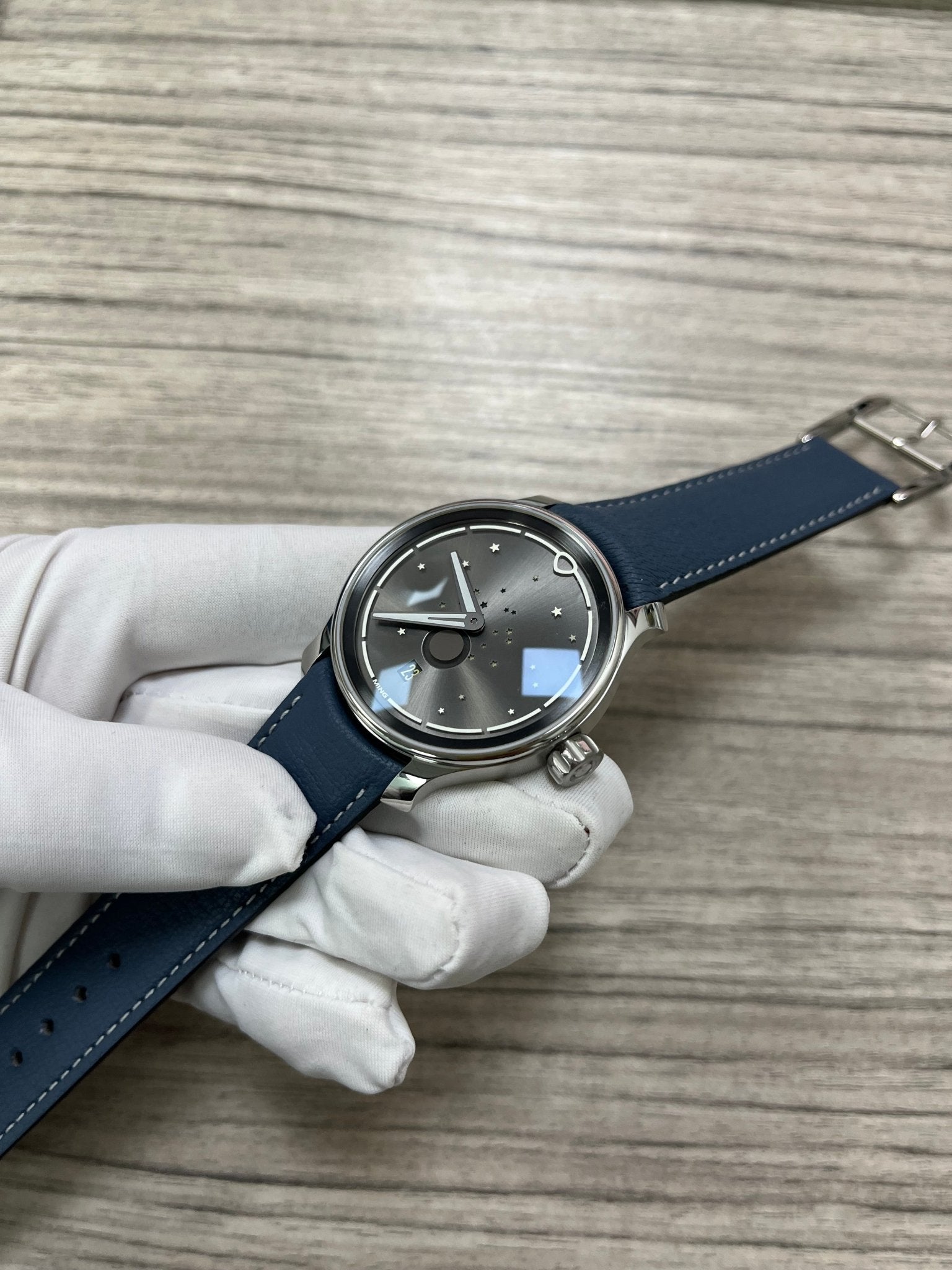 Anthracite skeletonized bridges with contrast rhodium circular brushing