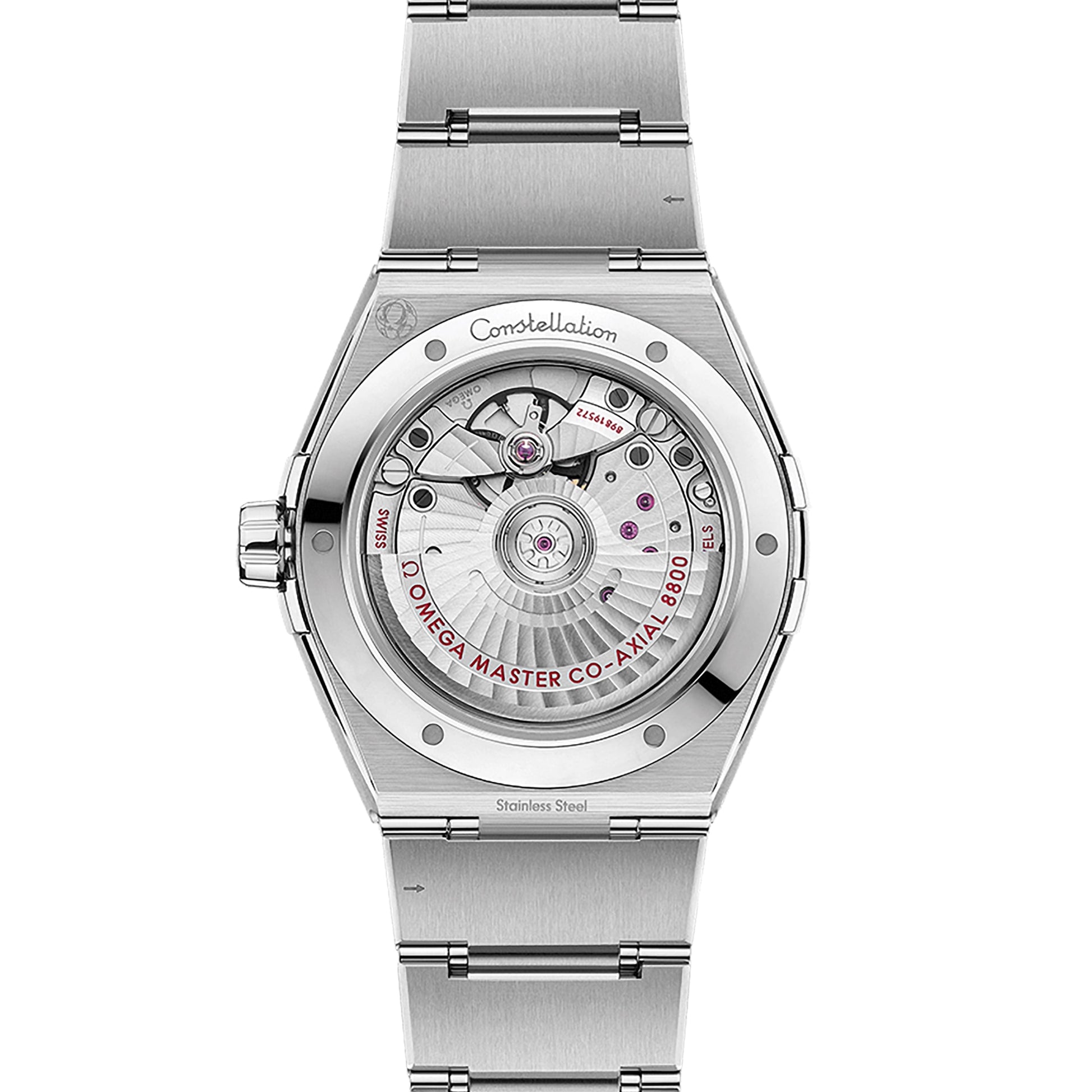 The dramatic and enduring design of the OMEGA Constellation is characterised by its famous half-moons, “claws” on the case and mono- rang bracelet. This 39 mm stainless steel model features a bezel engraved with Roman numerals, a sun-brushed black dial and a date window at the 6 o'clock position. The hands, OMEGA logo, Constellation star and indexes are all in 18K white gold. At the heart of this timepiece is the OMEGA Co-Axial Master Chronometer Calibre 8800, visible through the domed scratch-resistant sapphire crystal.