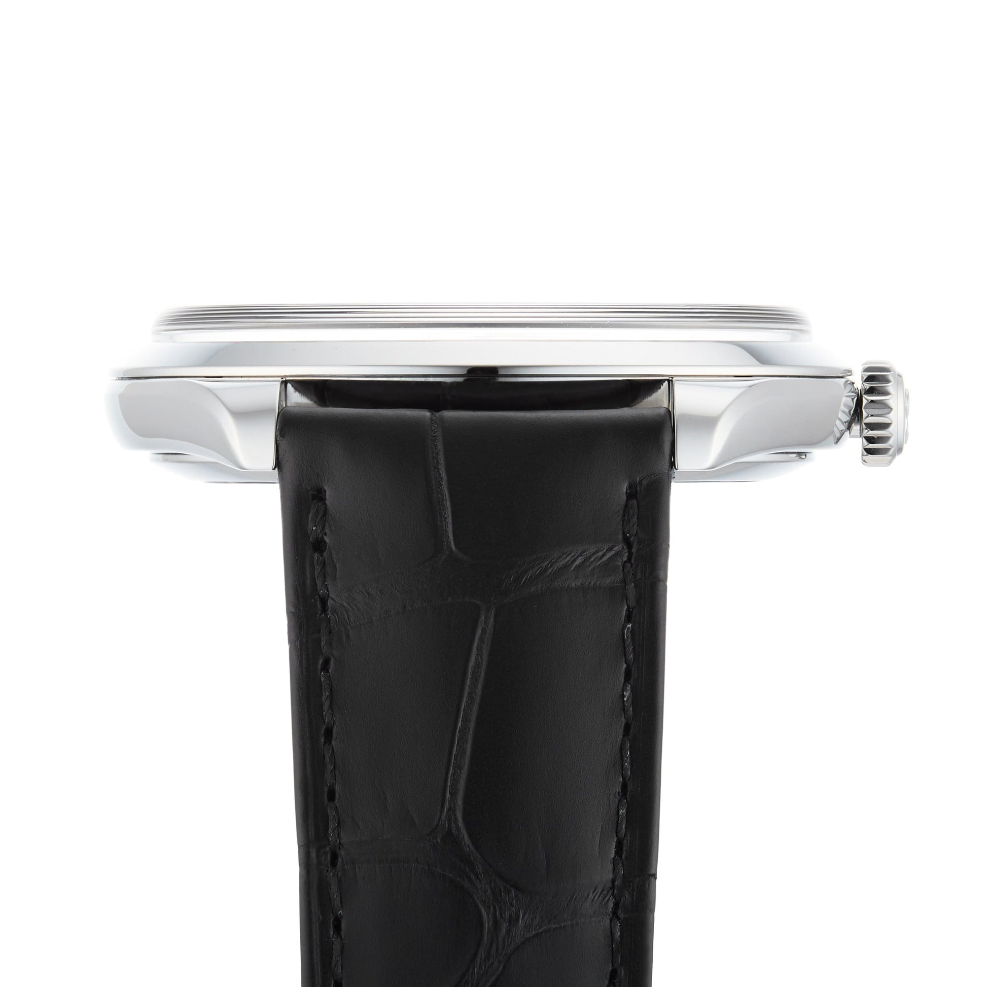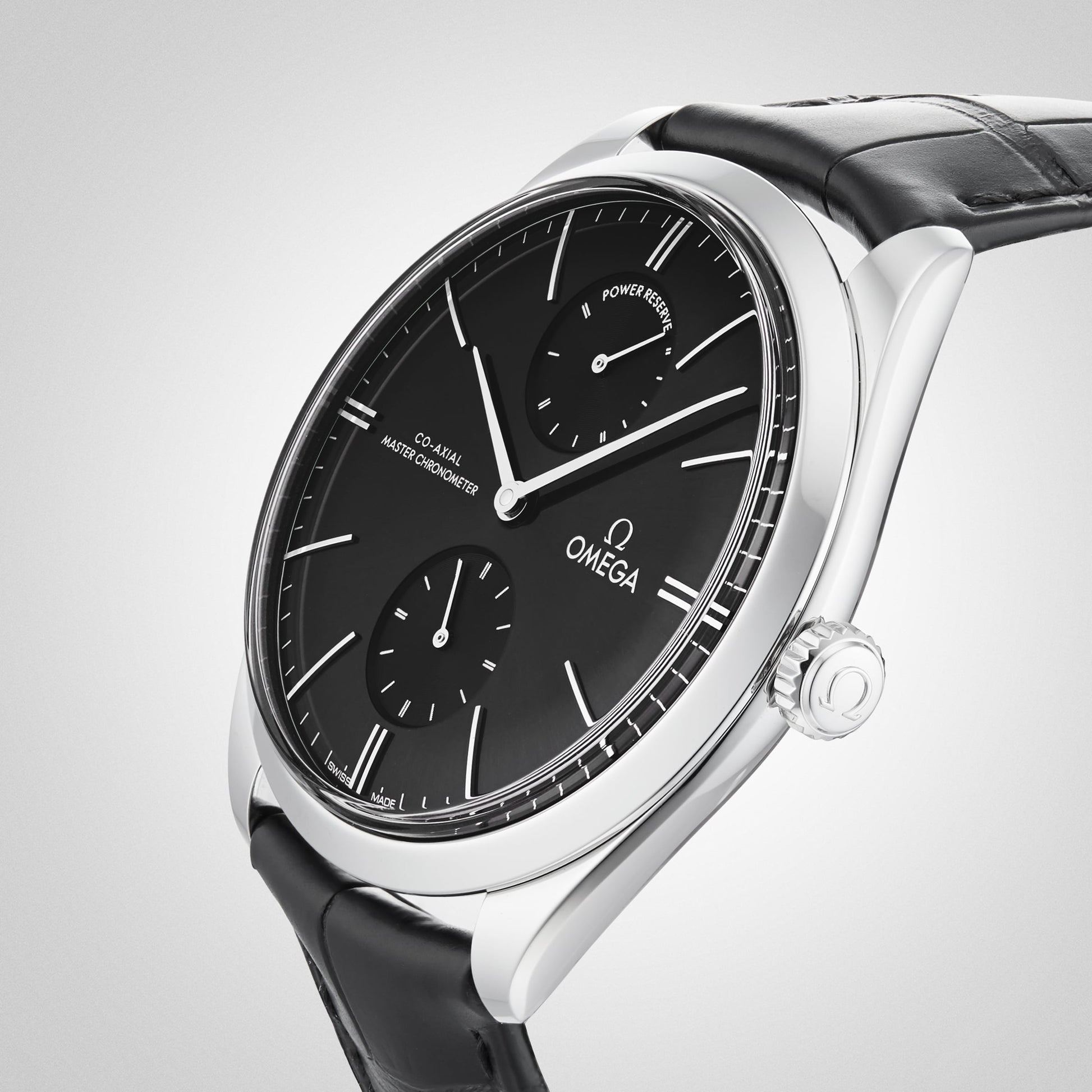 OMEGA Tresor - slim profile elegance Co-Axial Master Chronometer calibre 8934 movement 40mm stainless steel case paired with a black leather alligator strap Two sub-dials, for power reserve indication and Small Seconds display 30 metres of water resistance ELEGANCE SINCE 1949 Since 1949, the OMEGA Tresor collection has become world-renowned for its pure, elegant aesthetic and slimline case design. This Power Reserve edition, with its twin sub-dials, combines the finest, understated vintage styling with modern, technical excellence. UNMATCHED TECHNICAL PROWESS This sophisticated 40mm watch features a stainless steel case, with a domed black dial paired with a black leather alligator strap. The hands and indexes for all dials are crafted from 18K white gold. Powering this distinguished timepiece is the OMEGA calibre 8934 movement, fully METAS-certified for unparalleled accuracy and magnetic resistance.