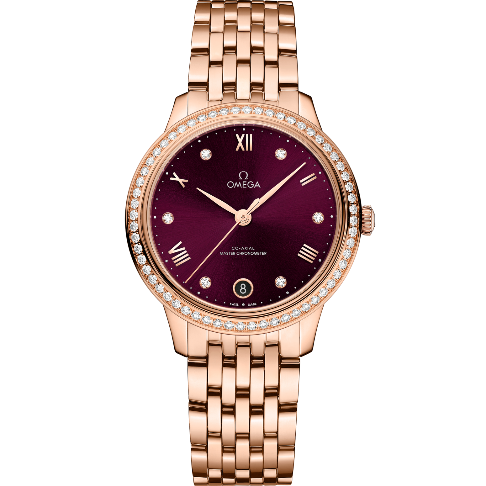 Omega De Ville Prestige 34 mm Red Dial with Diamonds Sedna™ 18k Rose Gold Bracelet 434.55.34.20.61.001