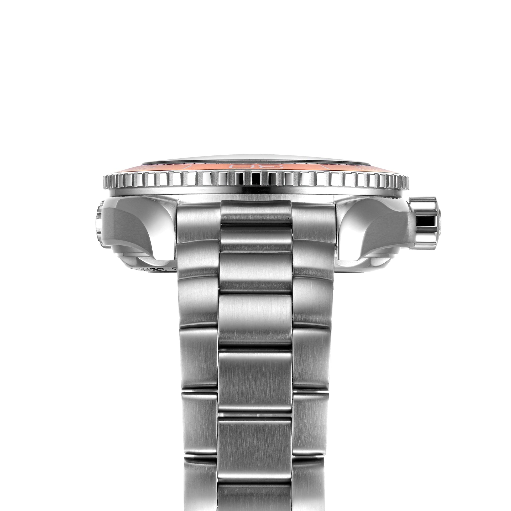A tribute to Omega’s maritime legacy Seamaster heritage with the 8900 calibre movement Water resistant to 60 bar (600 metres) 43. 5mm stainless steel case paired with a stainless steel bracelet Master chronometer certified by METAS MARITIME HERITAGE Introduced in 2005, the Planet Ocean 600m collection pays tribute to the brand’s ocean heritage with modern design, creative touches, and revolutionary Master Chronometer movements. Designed to meet the unique needs of divers, this unique range is equipped with Super- LumiNova coated indexes for visibility underwater, and water resistance to 60 bar (600 metres). DESIGNED FOR DIVERS This 43.5mm model features a robust stainless steel case, paired with a stainless steel bracelet, complete with a patented extendable foldover clasp and diver extension. Framed by an orange ceramic bezel complete with diving scale, the white ceramic dial features bold orange numerals and a date window at 3 o’clock. The 8900 calibre movement delivers power and precision with magnetic resistance to 15,000 gauss.