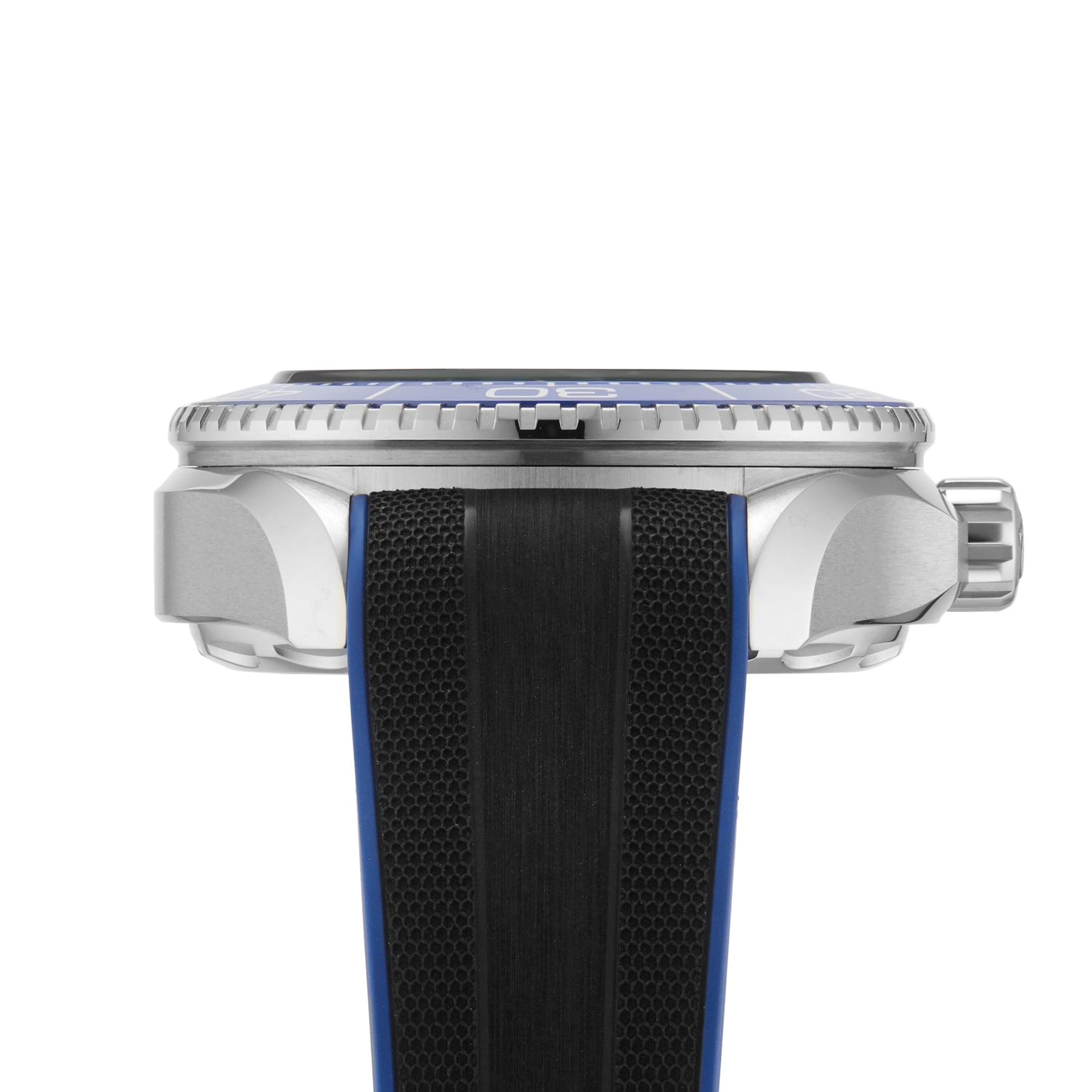 Adapted from the Ultra Deep, which made history by reaching the deepest place on Earth in 2019 Seamaster heritage with 8912 calibre movement Water resistant to 600 bar (6000 metres) 45.5mm O-MEGASTEEL case with a black and blue rubber strap Grade 5 titanium caseback with laser-engraved Sonar emblem Reaching historic depths The Ultra Deep made history when it reached the deepest place on Earth during the Five Deeps Exhibition in 2019. Adapted from that record breaking model, this unique collection has been tested in real ocean conditions, is water resistant to an impressive 600 bar, and comes with an extra diver extension for the strap. Meeting the ISO 6425:2018 standard for saturation divers’ watches, this remarkable timepiece can perform at new depths. Unrivalled precision on land and at sea This 45.5mm watch features an O-MEGASTEEL case, paired with a black rubber strap with a blue lining. O- MEGASTEEL is a new, high performance stainless steel alloy offering greater polish and shine, as well as superior strength. The white enamel dial provides a refined backdrop for 18K white gold hands and hour markers, finished with white Super-LumiNova for enhanced visibility. The polished, blue ceramic bezel and the four blue numerals add a vibrant touch of colour to this statement timepiece. The 8912 calibre movement provides unrivalled precision in any conditions. Adapted from the Ultra Deep, which made history by reaching the deepest place on Earth in 2019 Seamaster heritage with the 8912 calibre movement Water resistant to 600 bar (6000 metres) 45.5mm O-MEGASTEEL case with a black and blue rubber strap Grade 5 titanium caseback with laser-engraved Sonar emblem REACHING HISTORIC DEPTHS The Ultra Deep made history when it reached the deepest place on Earth during the Five Deeps Exhibition in 2019. Adapted from that record breaking model, this unique collection has been tested in real ocean conditions, is water resistant to an impressive 600 bar, and comes with an extra diver extension for the strap. Meeting the ISO 6425:2018 standard for saturation divers’ watches, this remarkable timepiece can perform at new depths. UNRIVALLED PRECISION ON LAND AND AT SEA This 45.5mm watch features an O-MEGASTEEL case, paired with a black rubber strap with a blue lining. O-MEGASTEEL is a new, high performance stainless steel alloy offering greater polish and shine, as well as superior strength. The white enamel dial provides a refined backdrop for 18K white gold hands and hour markers, finished with white Super-LumiNova for enhanced visibility. The polished, blue ceramic bezel and the four blue numerals add a vibrant touch of colour to this statement timepiece, while the 8912 calibre movement provides unrivalled precision in any conditions.