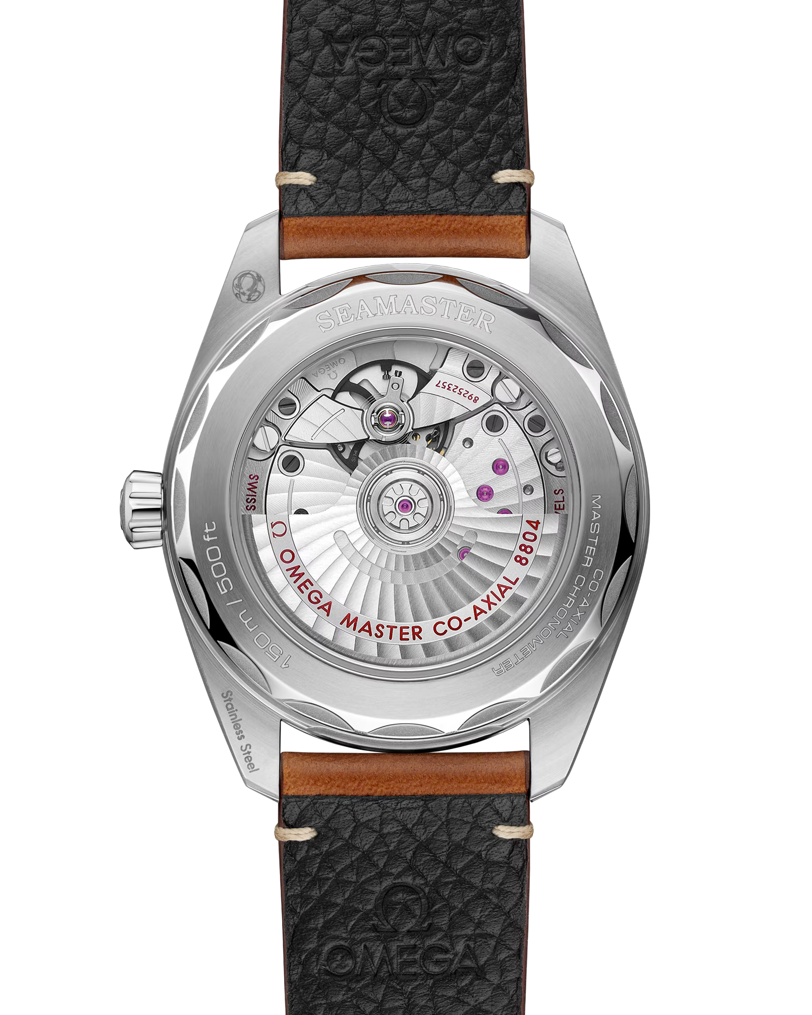 This watch continues the Railmaster’s legacy of anti-magnetism, courtesy of the Co-Axial Master Chronometer Calibre 8804. The movement is resistant to magnetism up to 15,000 gauss and can be viewed through the transparent sapphire crystal on the caseback.