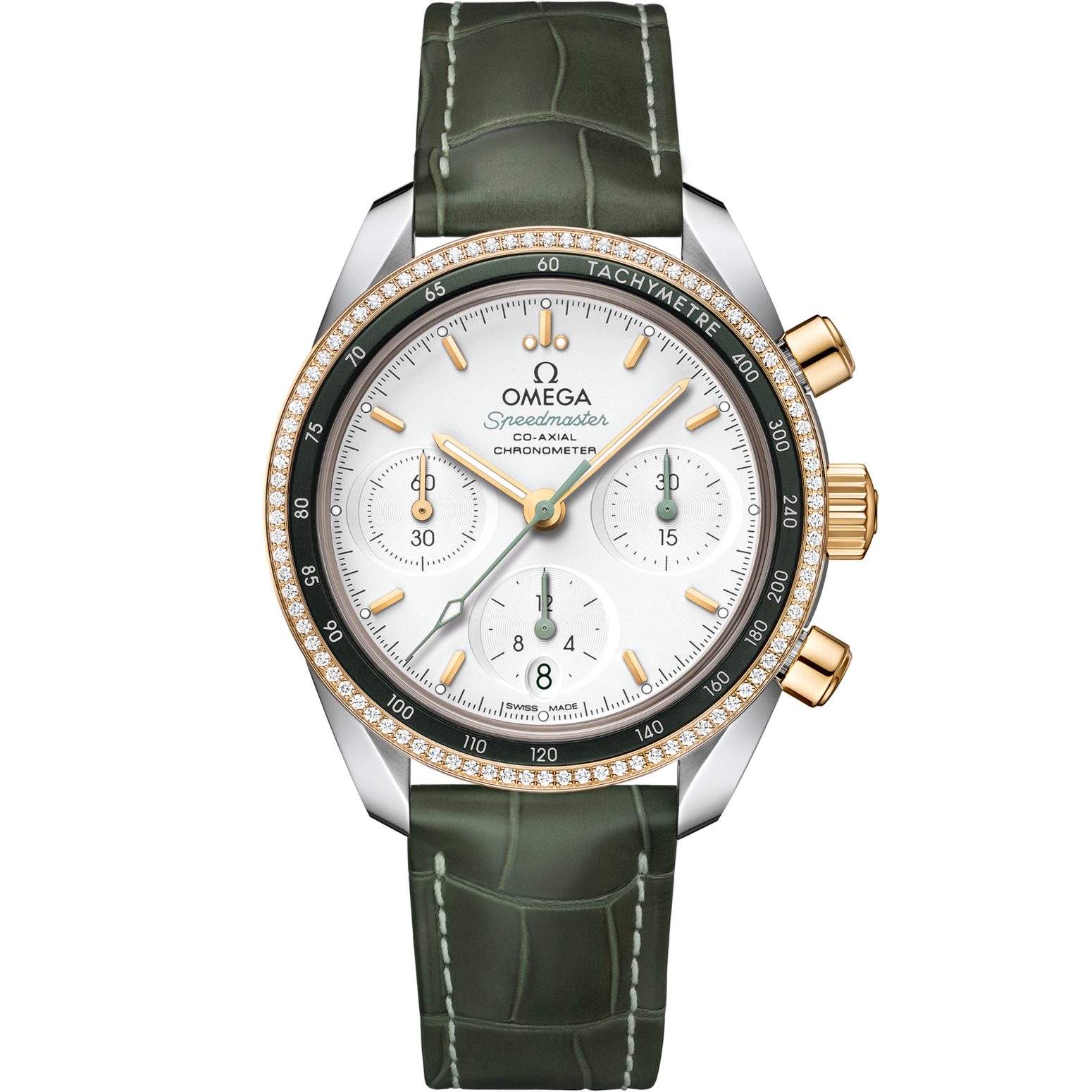 Omega Speedmaster 38 Silver Dial 38 mm with Diamonds Stainless Steel 18k Yellow Gold Strap 324.28.38.50.02.001