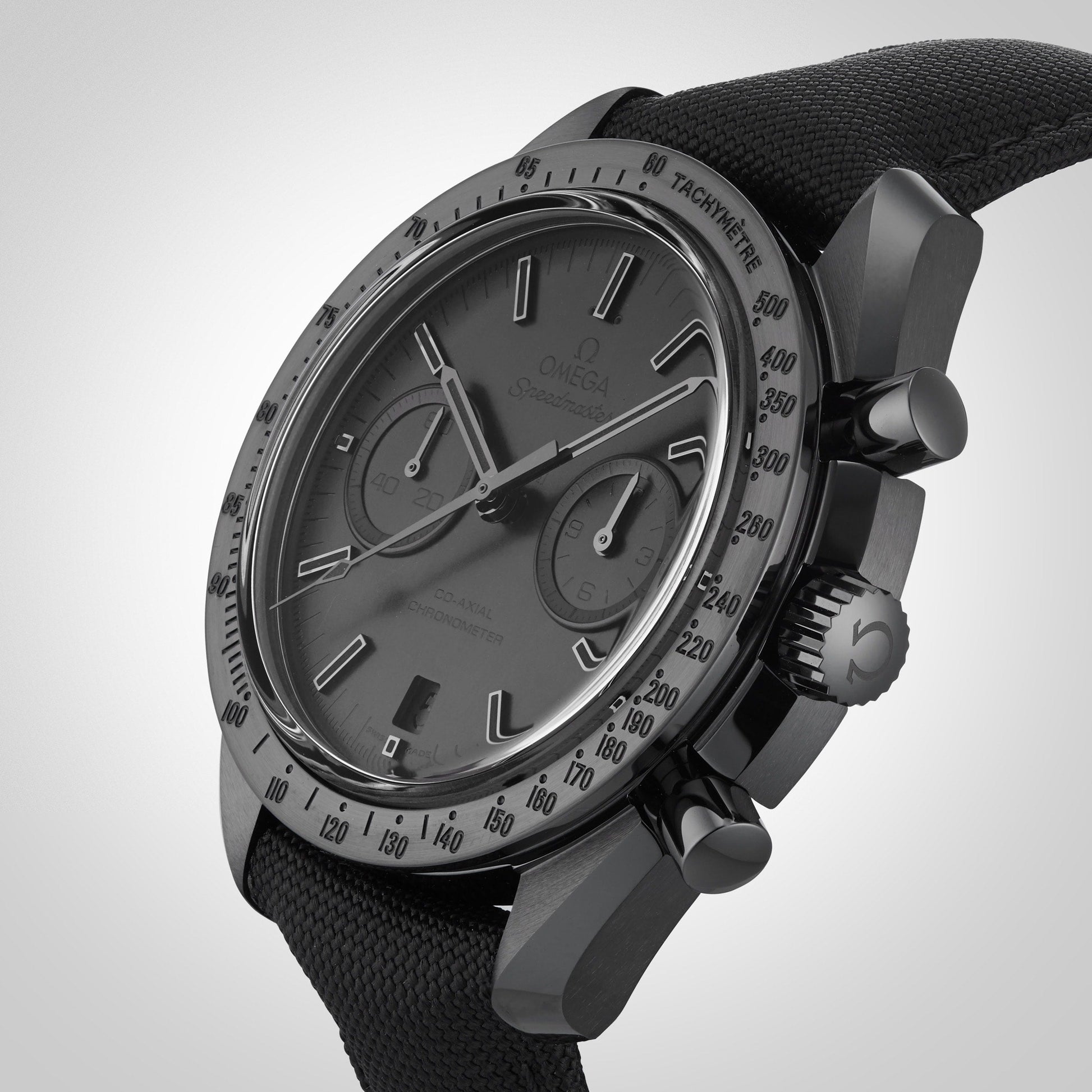A tribute to the accomplishments of the Apollo 8 astronauts Bold, all black design inspired by the dark side of the moon Precision and reliability provided by the 9300 calibre movement 44.25mm black ceramic case paired with a black coated nylon fabric strap Co- Axial escapement for long-lasting precision VISIT THE DARK SIDE OF THE MOON The Speedmaster pays homage to The Apollo 8 astronauts who were the first people to set eyes on the dark side of the moon. Capturing the pioneering spirit of every Apollo astronaut, the all-black, ceramic Speedmaster Dark Side of the Moon reinforces the brand’s extraordinary commitment to pushing boundaries, on earth and on the moon. OUTSTANDING PERFORMANCE ON EARTH AND BEYOND Presented in a 44.25mm black ceramic case paired with a black coated nylon fabric strap, this all-black watch references the unbroken blackness of the dark side of the moon. The matt black ceramic dial features blackened Moonwatch-style hands and matt black sub-dials at 3 and 9 o’clock, while the black ceramic bezel has a black lacquered tachymeter scale. The 9300 calibre movement ensures optimum precision.