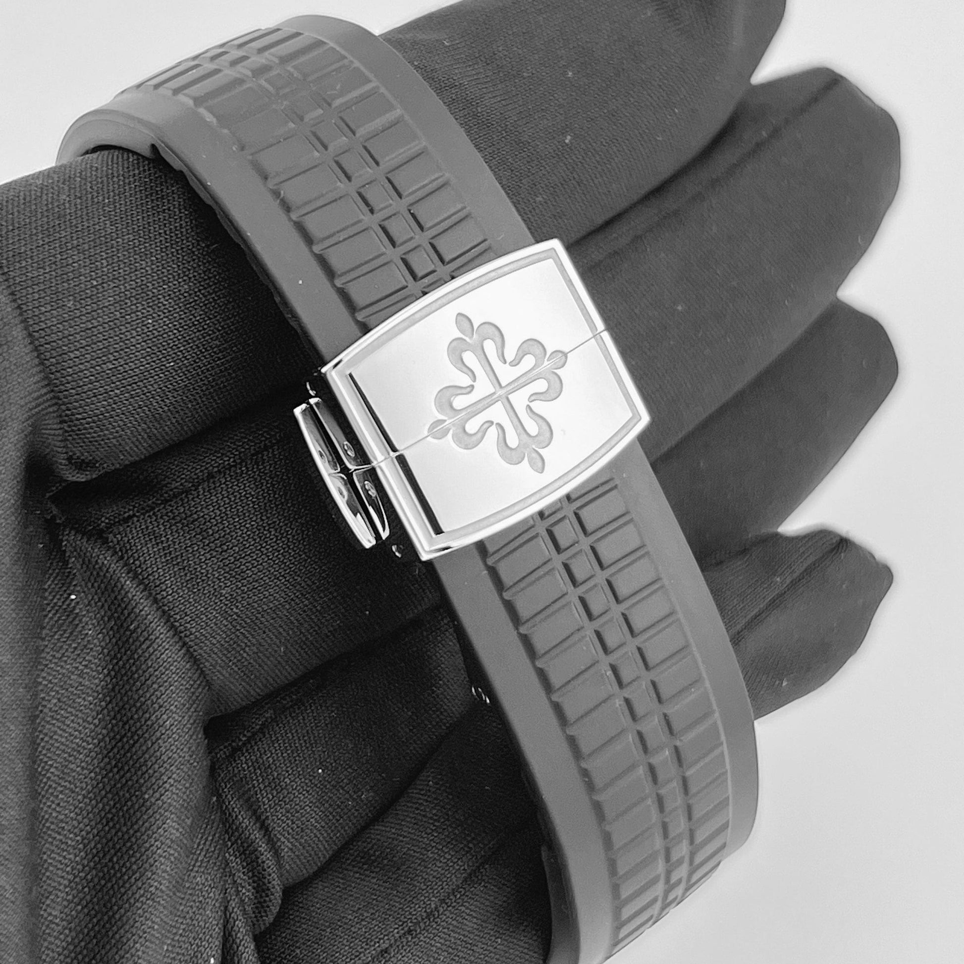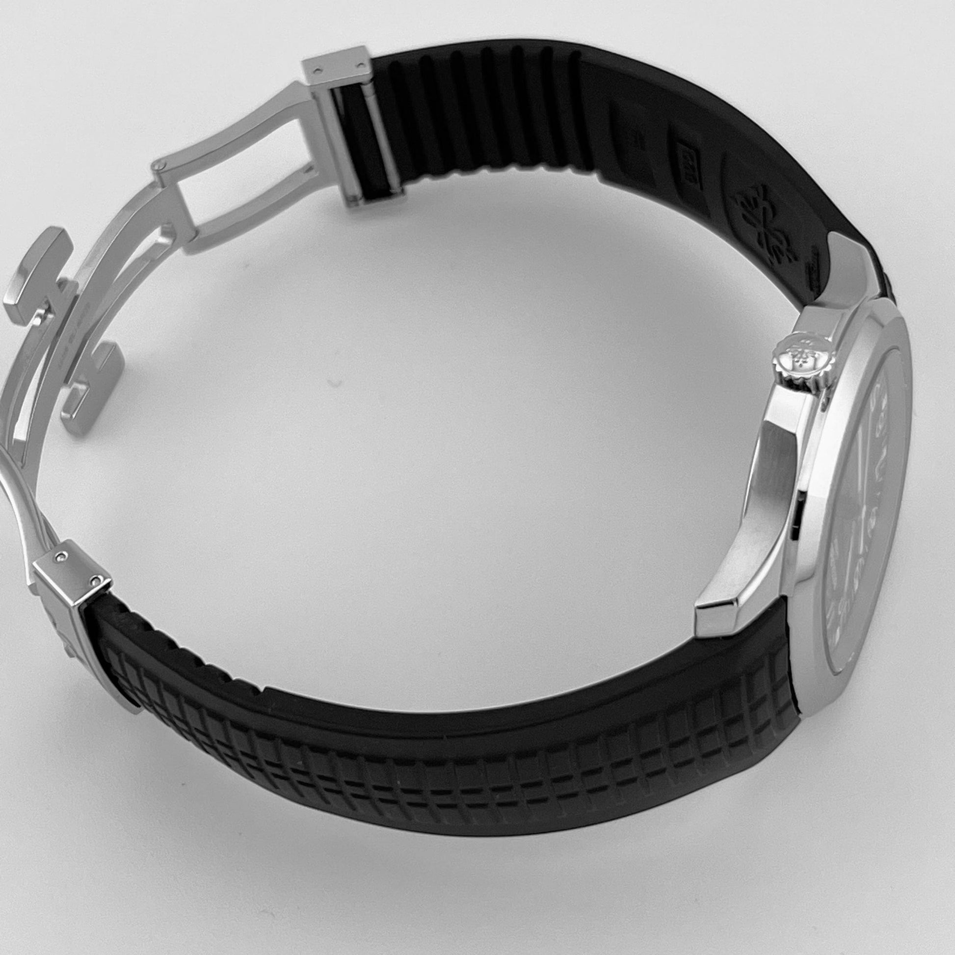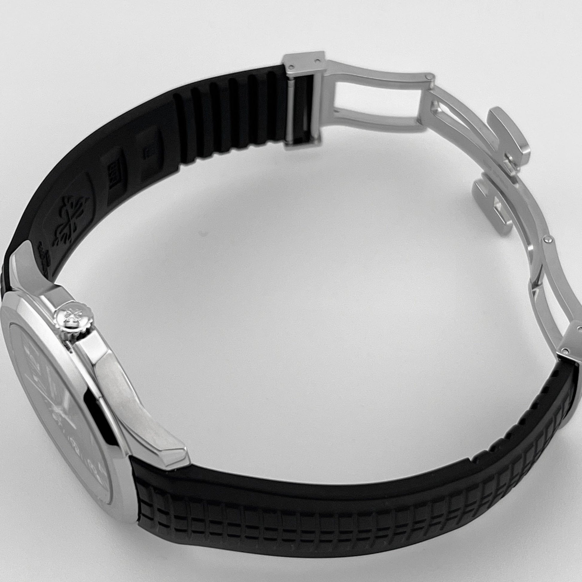 Paired with a black rubber strap and secured by a stainless steel fold-over clasp, this timepiece offers durability and style. The 'Tiffany & Co.' co-branding makes this Aquanaut one of the most exclusive and sought-after variations, perfect for discerning collectors who value rarity and timeless design.