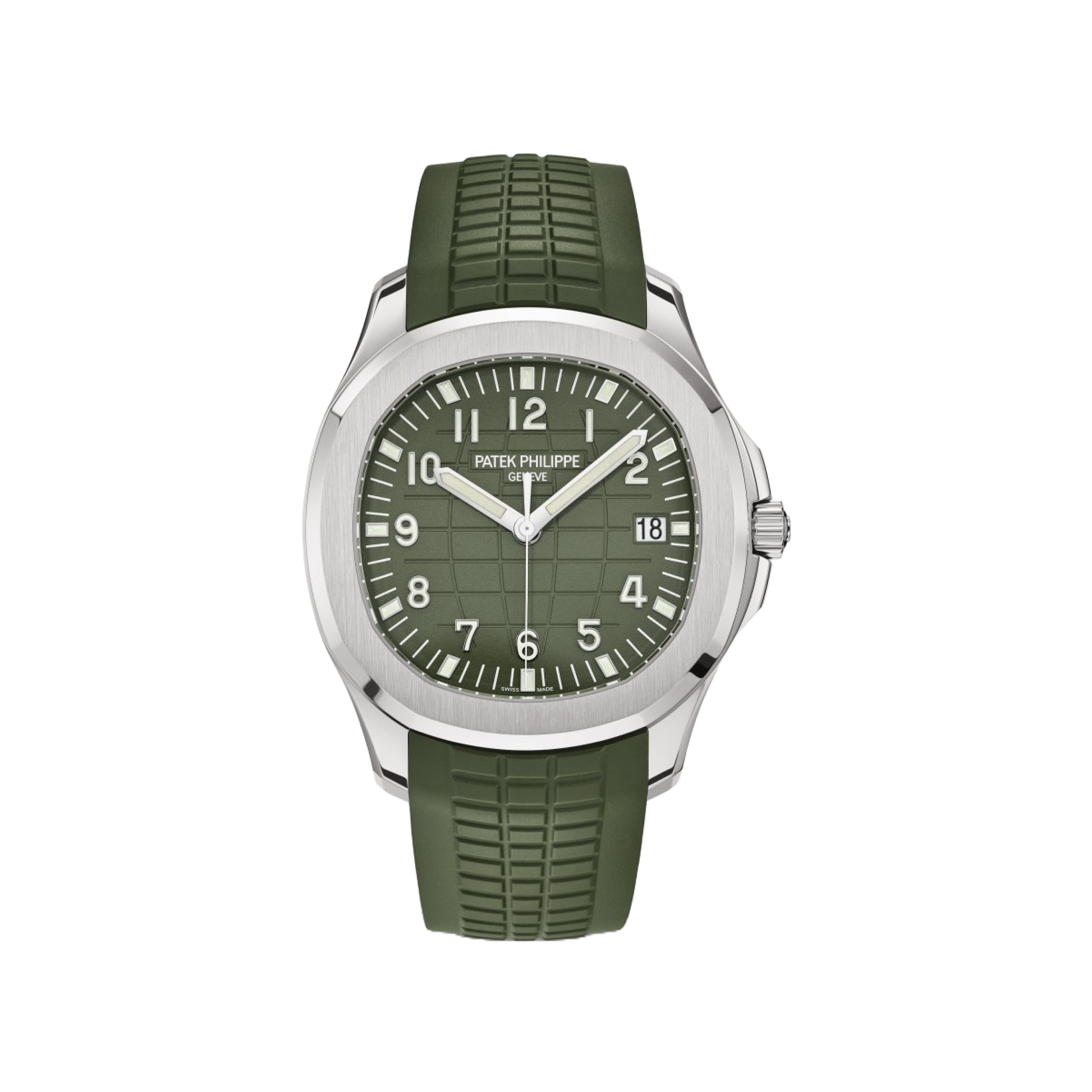 The epitome of modern sporty-chic, the men’s white gold “Jumbo” Aquanaut (42.2 mm) reinforces its youthful, dynamic style with a fresh khaki green design. This bold color choice evokes a sense of adventure and distant horizons. The rounded octagonal case and bezel feature a combination of polished and satin finishes.