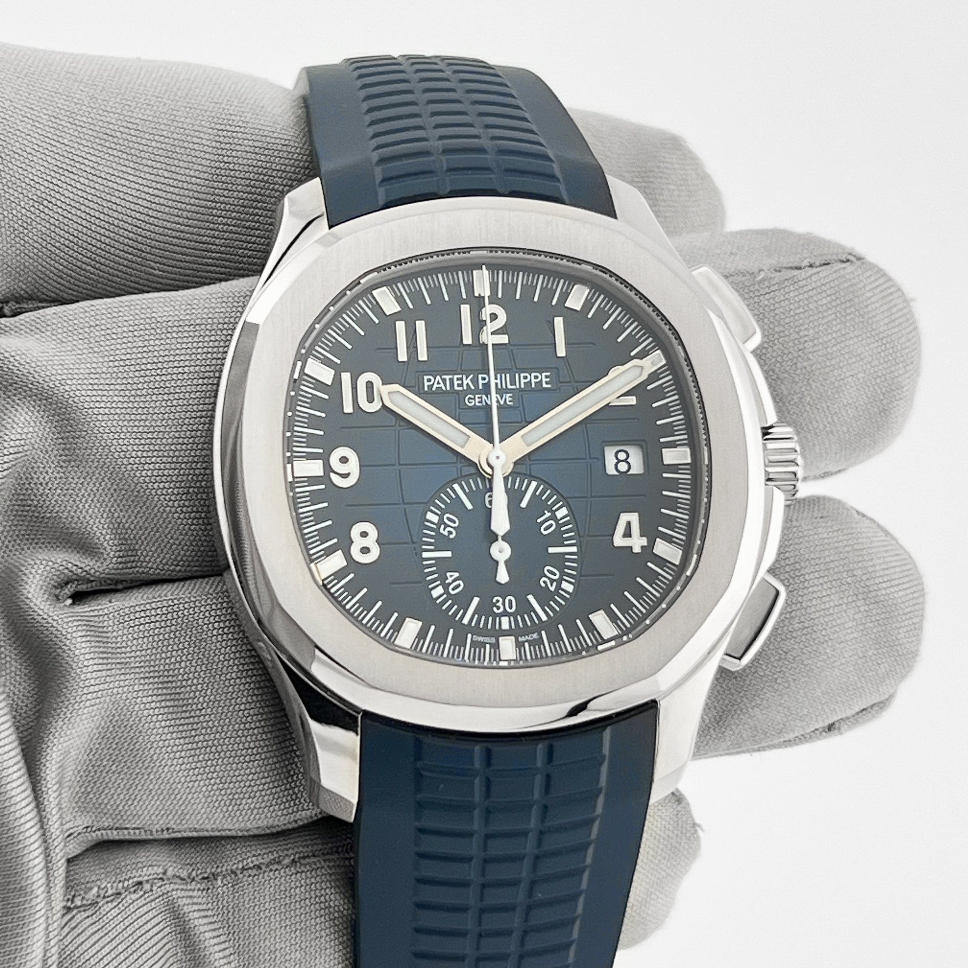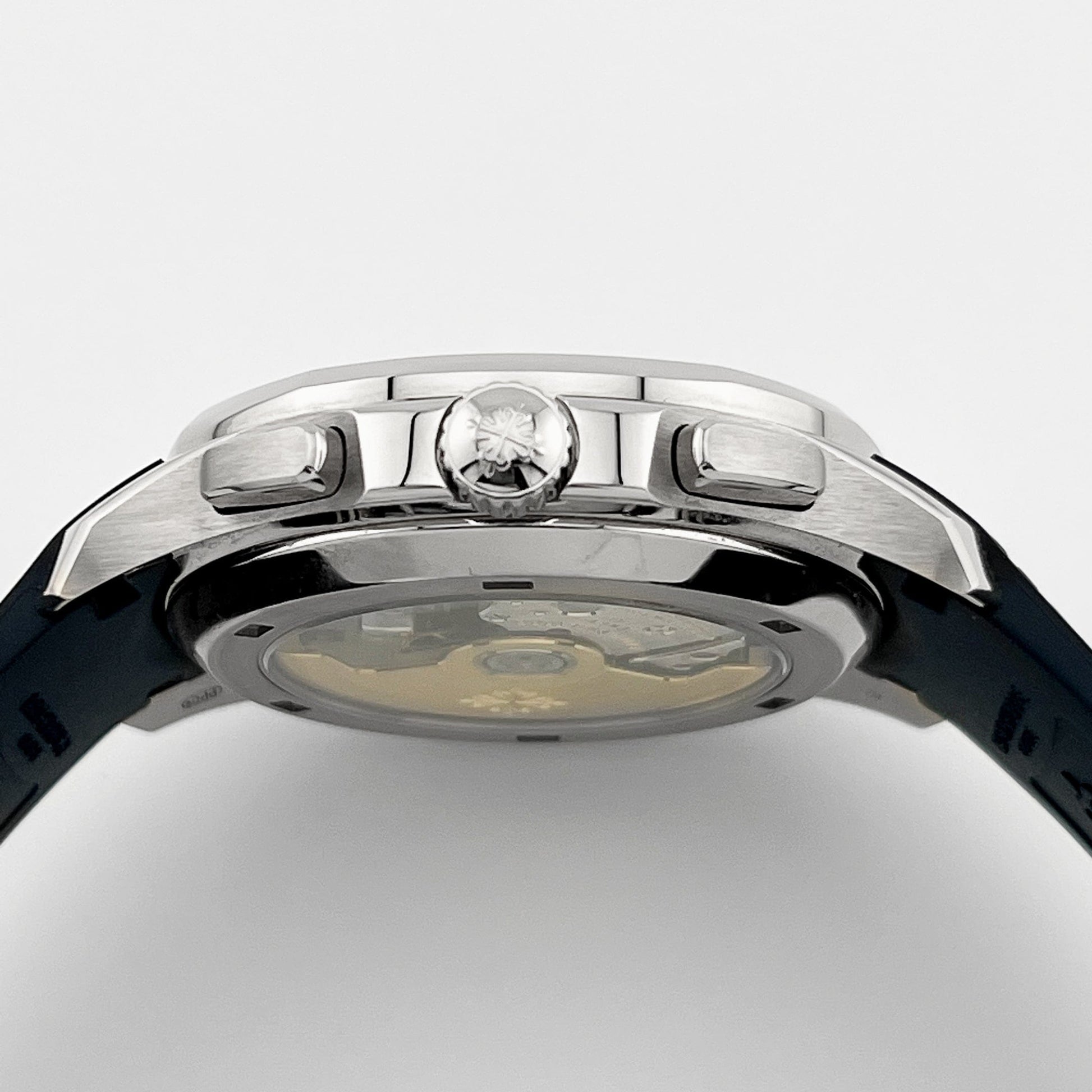 Paired with a matching blue rubber strap and a secure white gold fold-over clasp, the Aquanaut 5968G-001combines technical sophistication with bold visual appeal. It's the perfect choice for collectors who seek a high-complication sports watch in a luxurious and unmistakably modern package.