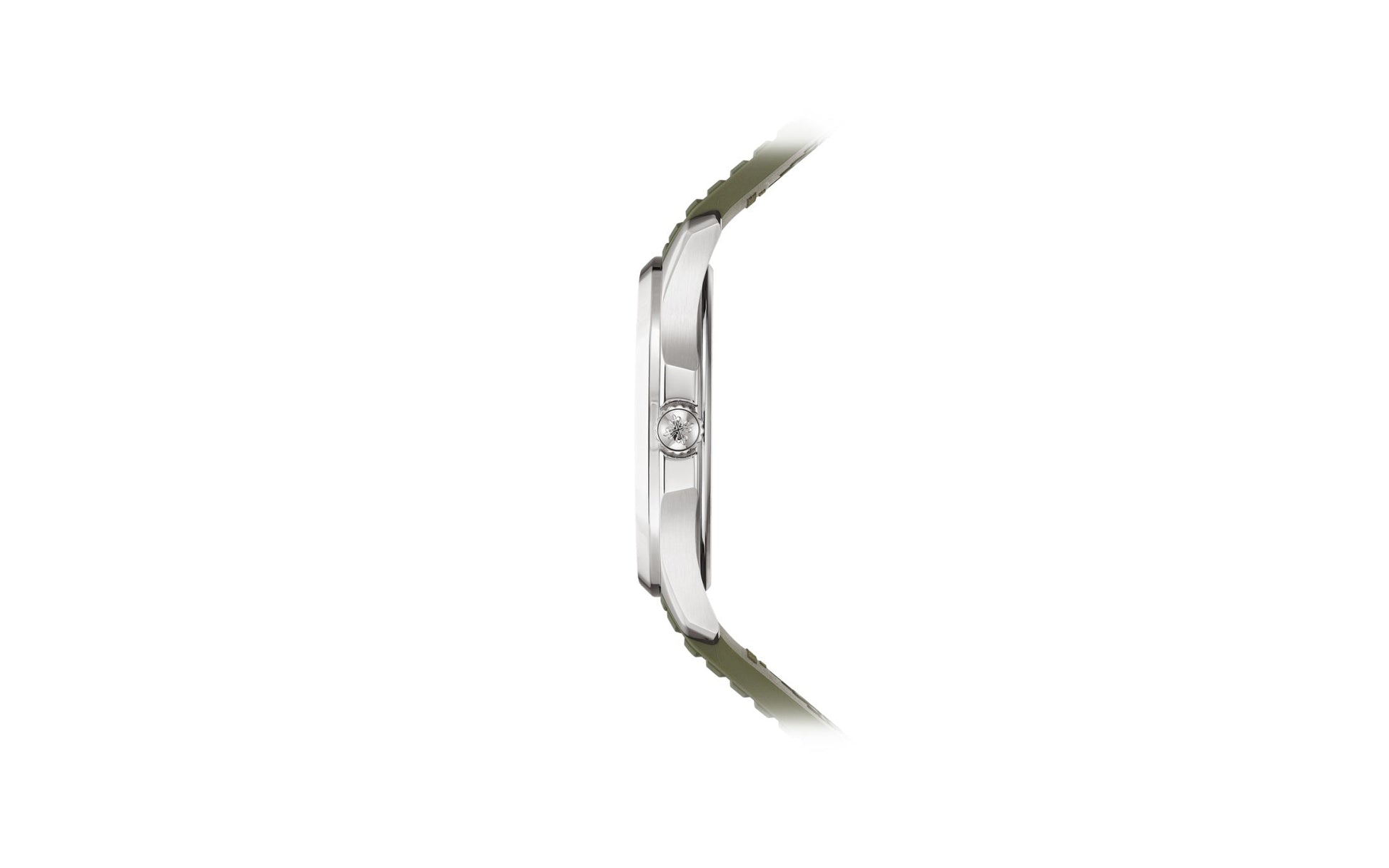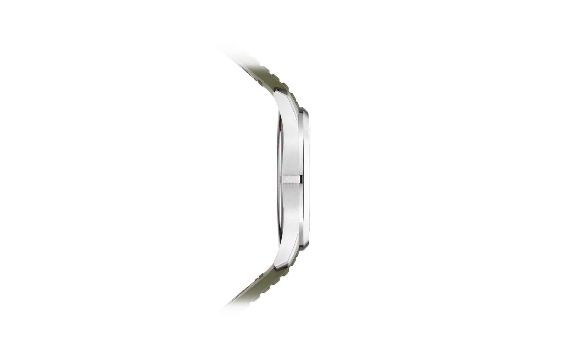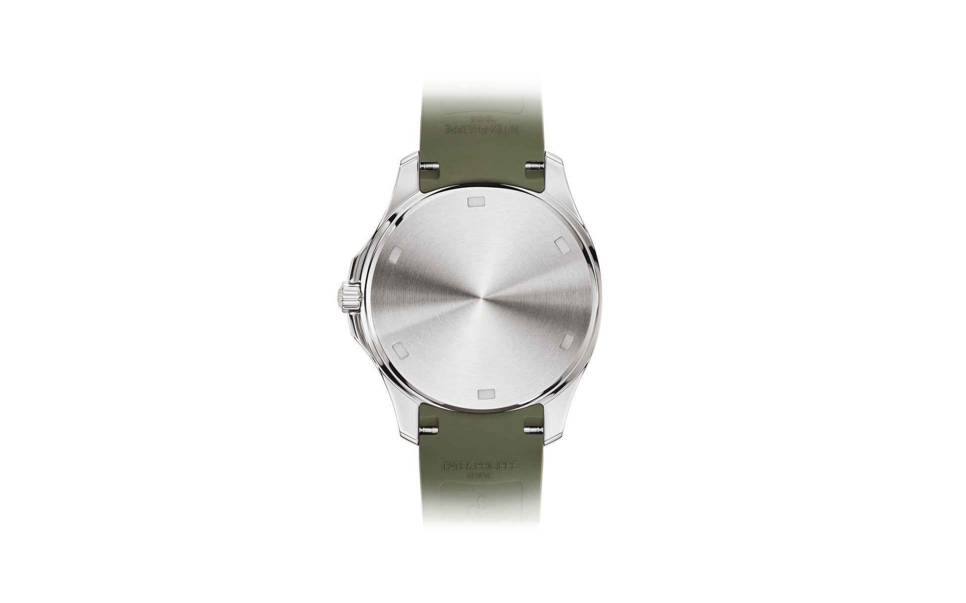 New Patek Philippe Aquanaut Luce luxury Ladies watch, with a larger diameter 38,8mm, Stainless Steel, Ref. 5267/200A-011. The first complex quartz wristwatch in the modern Aquanaut sports collection, which perfectly matches the character of this young and dynamic watch line. His Stainless Steel rounded, pillow-like octagon-shaped case and gently curved lugs, complemented by polished and satin finishes are unmistakable. On a beautiful Khaki green dial with embossed "Aquanaut" harmoniously looks perfectly readable large applied polished Arabic numerals made of 18k White Gold with luminescent coating in the form of hour markers. The manufacturer paid special attention to the second track on the outer rim of the dial, on which applied silvery lines with fairly wide luminous marks located every 5 minutes. Large polished luminous hour and minute hands in 18k White Gold indicate the time. These are complemented by a slim and elegant second hand (Sweep seconds hand). The date window is traditionally at the 3 o'clock position. A polished Stainless Steel screw-down crown with a ribbed edge for a comfortable grip and the Patek Philippe logo is the finishing touch to the perfect picture. The dial is covered with a scratch-resistant sapphire crystal. The screw-down Solid case back is made of Stainless Steel. The elegant highlight of this model is the fixed sparkling stainless steel bezel set with 48 diamonds totaling 1,1cr with polished on the sides, provides a wide view of the dial. The finish on the side of the bezel is amazing because at first glance, it looks rounded, but upon closer inspection, you can see the crisp edges playing with the light. The model is equipped with a Patek Philippe caliber E 23‑250 S C with a Quartz movement powered by a silver oxide battery with a 3-year lifespan. This beautiful sport chic watch is presented on an Integrated Khaki green Composite material strap. He is highly resistant to wear, salt water and UV radiation. The strap are fastens with Patek Philippe's patented Stainless Steel folding clasp, polished and engraved with the Calatrava cross. Opening the clasp reveals the engraved Patek Philippe logo with the word GENEVE. Water resistant up to 120m/394ft (12 ATM).