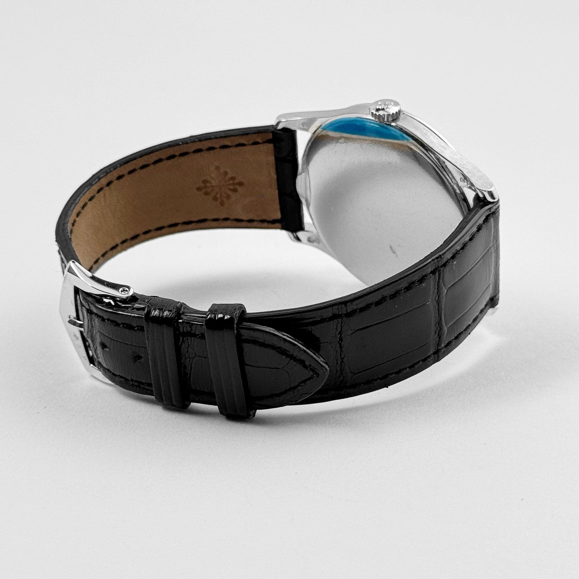 For collectors, the 5196P-001 represents the pinnacle of dress watch sophistication, combining rare platinum construction with vintage-inspired proportions reminiscent of the original Calatrava models. The manually wound movement, visible through a solid caseback, pays homage to traditional watchmaking while ensuring a seamless, ultra-thin silhouette. With its flawless finishing and rare design elements, this platinum Calatrava remains a true connoisseur’s piece, embodying Patek Philippe’s enduring legacy of craftsmanship and elegance.