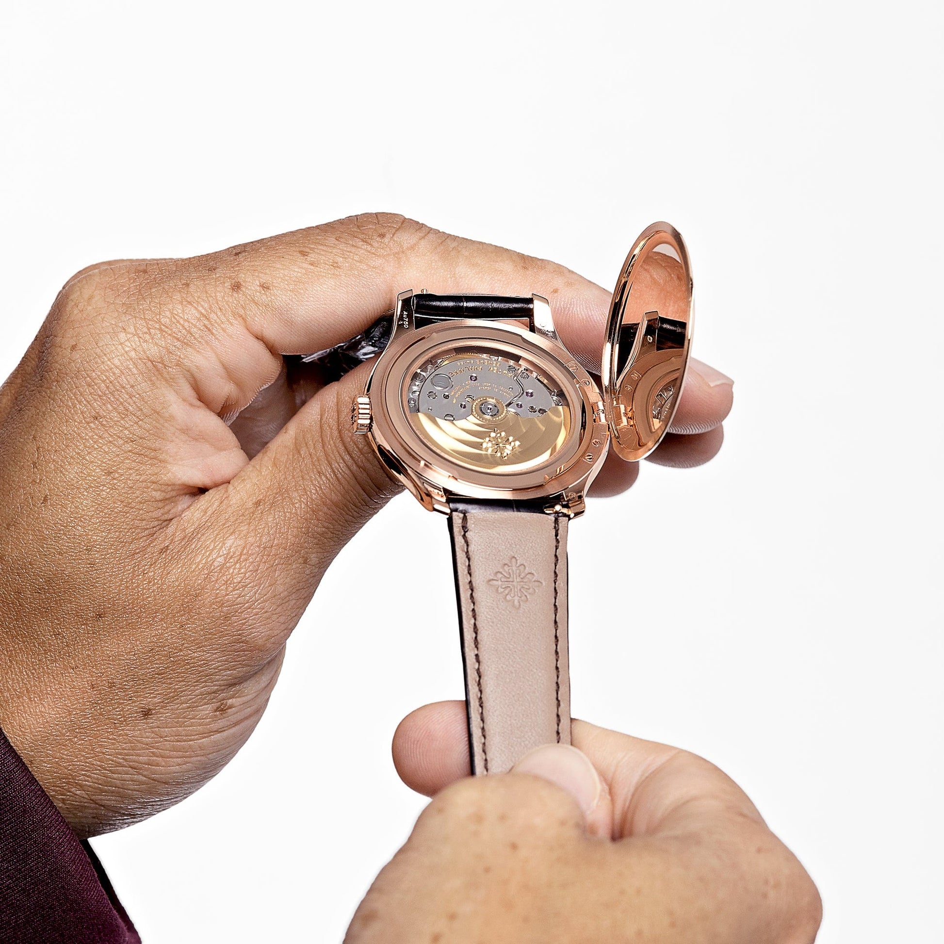 Paired with a hand-stitched brown alligator leather strap and a rose gold pin buckle, the 5227R-001 seamlessly blends classic design with modern functionality. Ideal for collectors seeking an elegant yet versatile dress watch, this Calatrava remains a timeless testament to Patek Philippe’s enduring legacy.