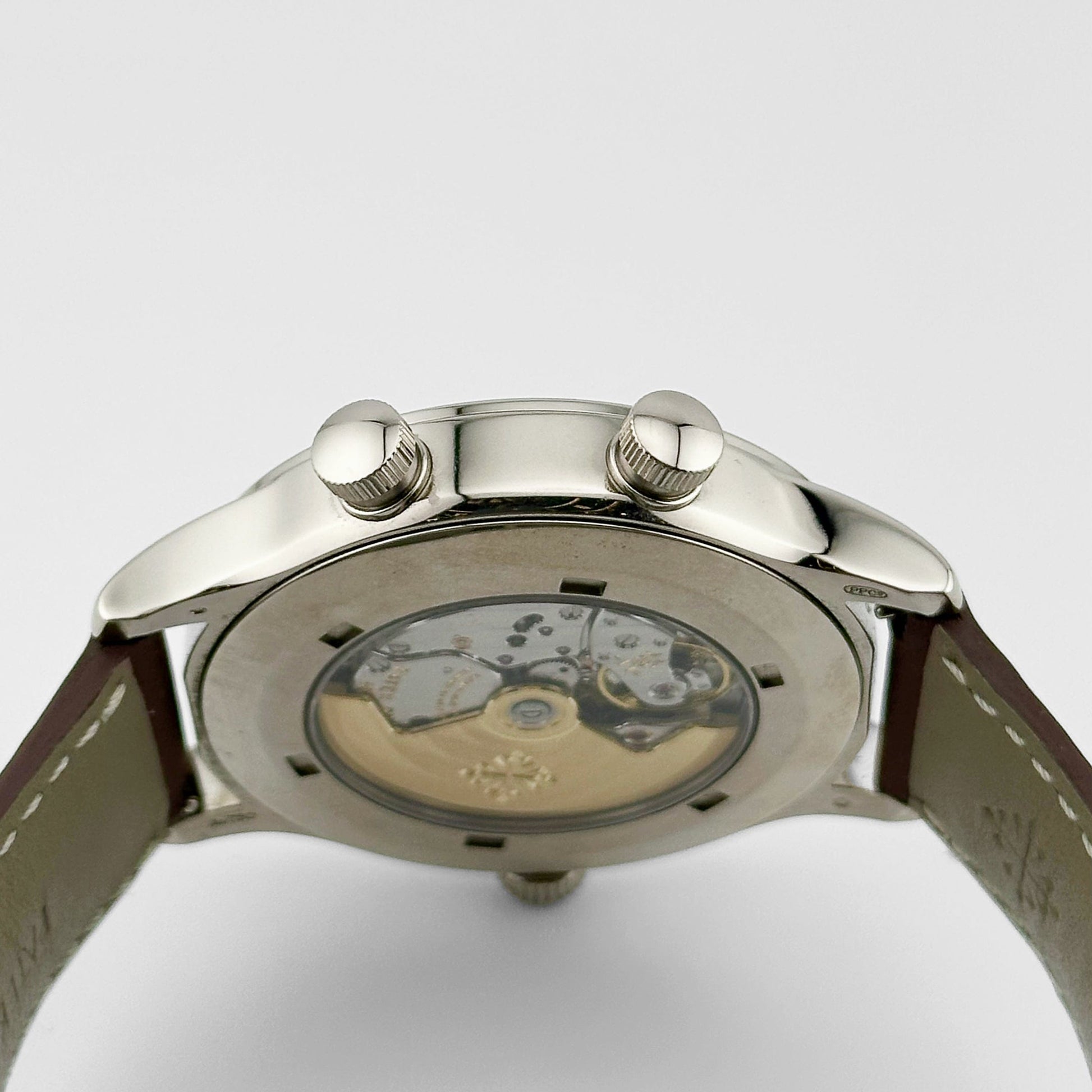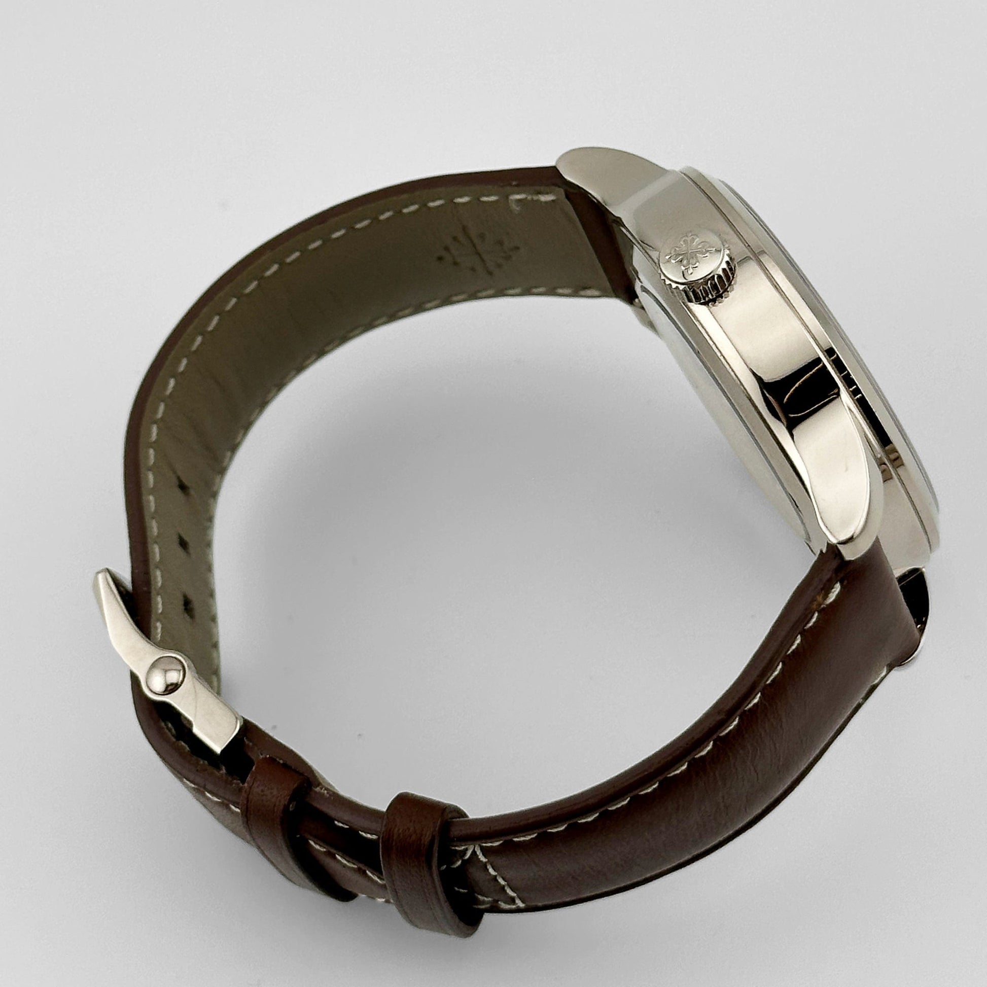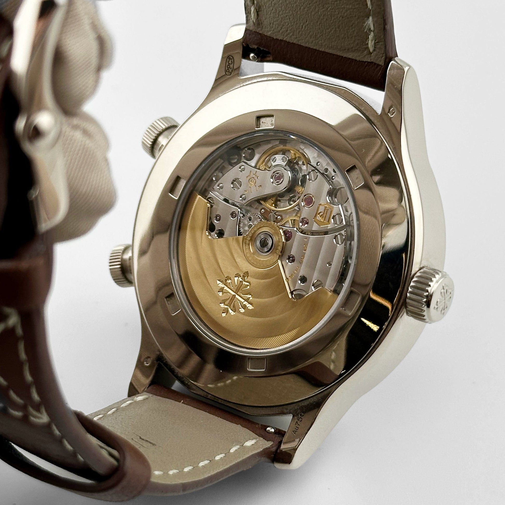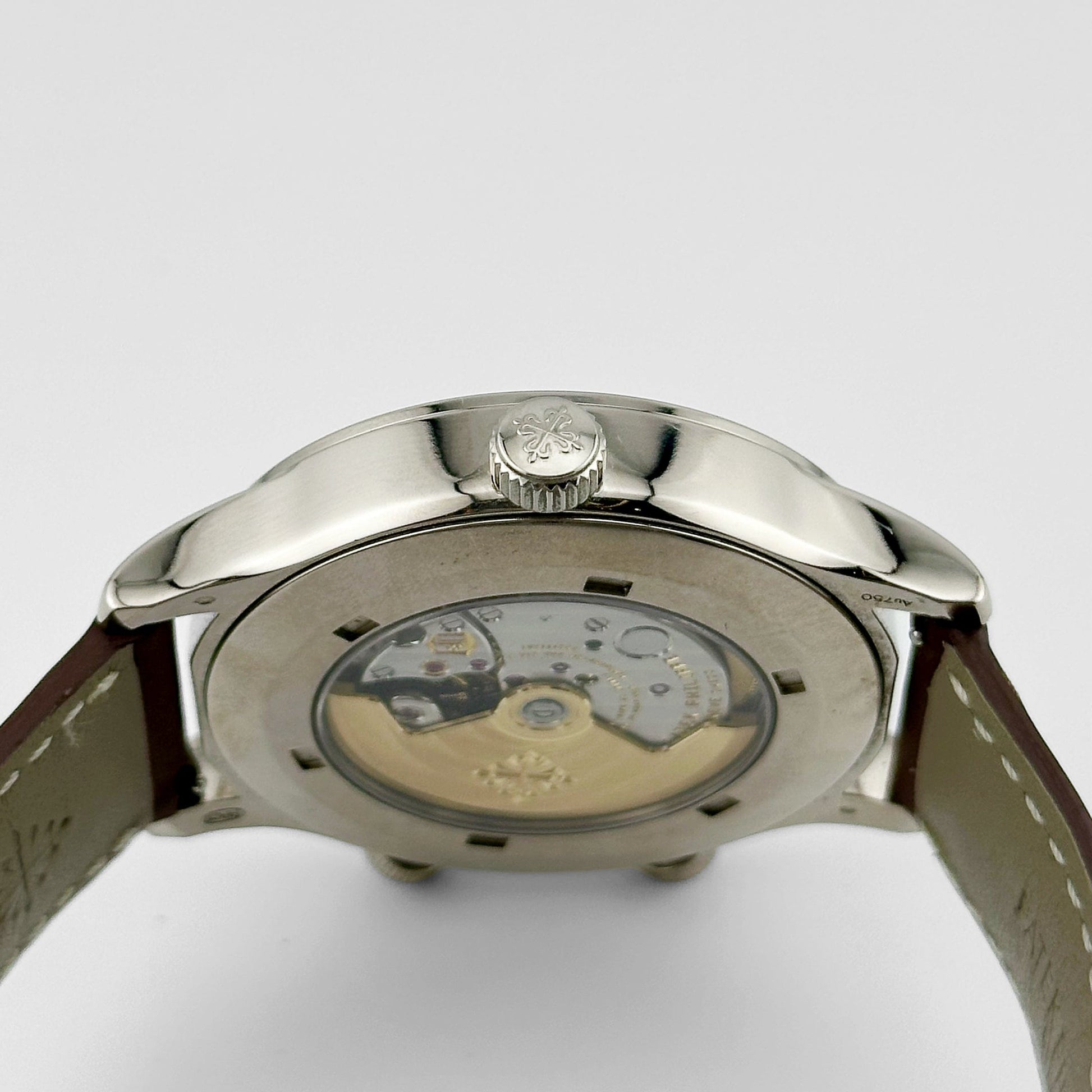 Paired with a calfskin leather strap and a white gold pin buckle, the 5524G-001 combines utility, elegance, and Patek Philippe’s renowned craftsmanship. A standout piece for collectors seeking a unique and functional take on the classic Calatrava.