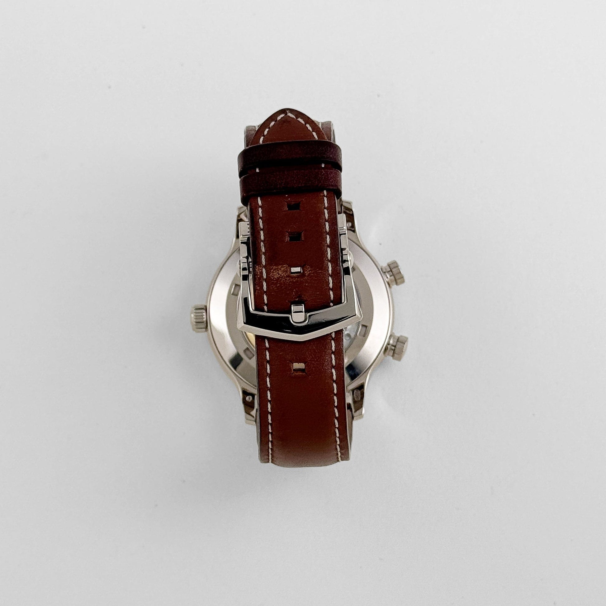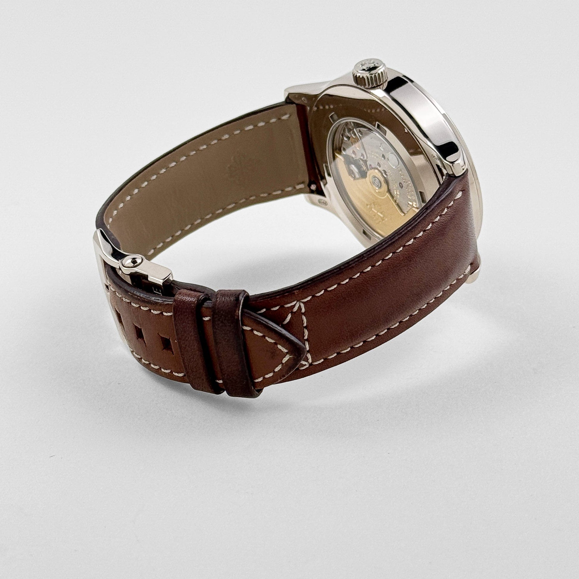 Paired with a calfskin leather strap and a white gold pin buckle, the 5524G-001 combines utility, elegance, and Patek Philippe’s renowned craftsmanship. A standout piece for collectors seeking a unique and functional take on the classic Calatrava.