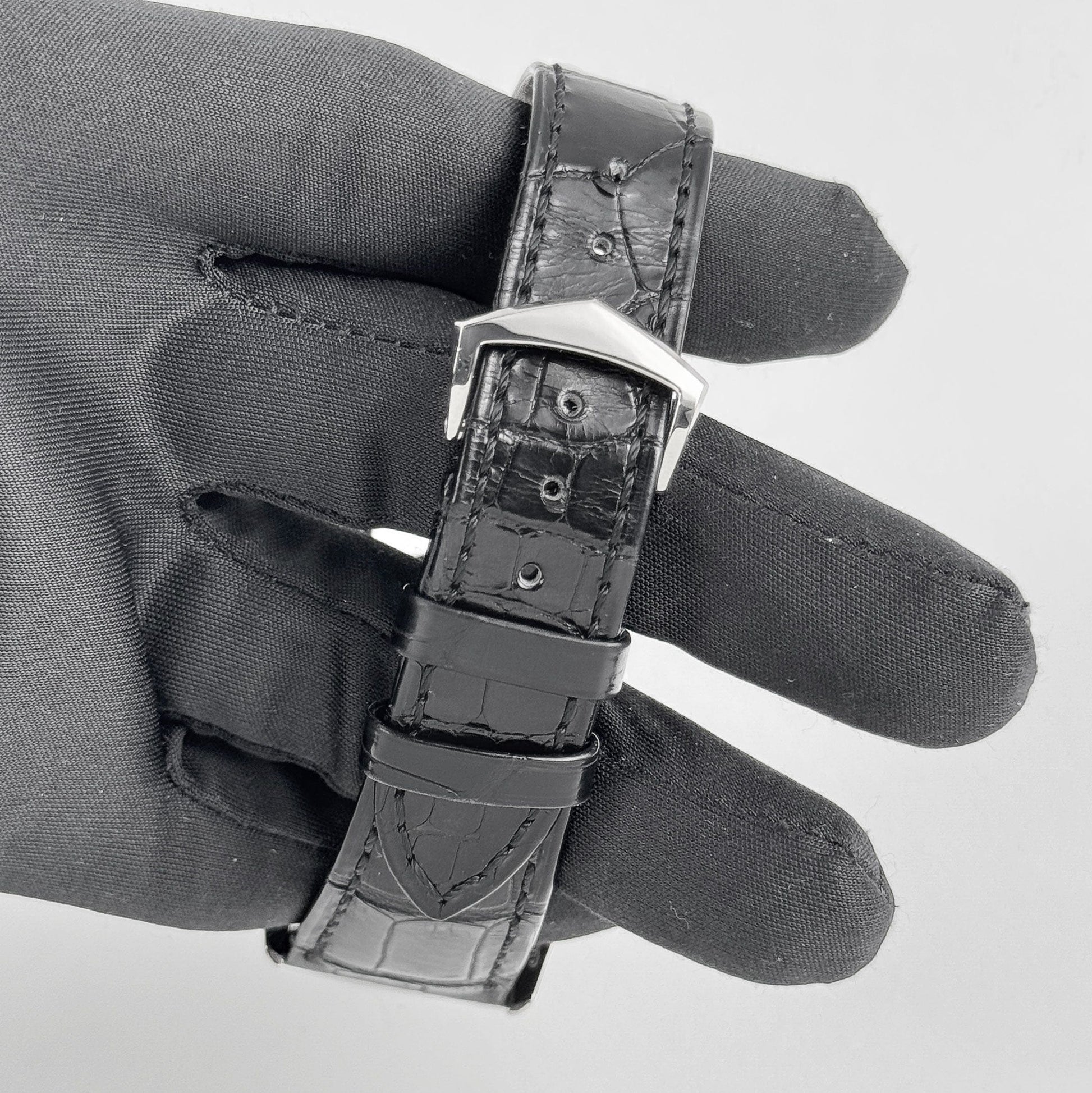 The Patek Philippe Calatrava 6000G-001 takes a contemporary approach to one of the brand’s most understated lines. Its 37 mm white gold case frames a black lacquered dial, distinguished by applied Arabic numerals and a peripheral date ring traced by a crescent-tipped pointer hand. The off-center small seconds subdial at 4 o’clock adds asymmetry while enhancing the design’s balance. Slim leaf-style hands and a clean layout underscore the modern character of this reference, all protected beneath a domed sapphire crystal.