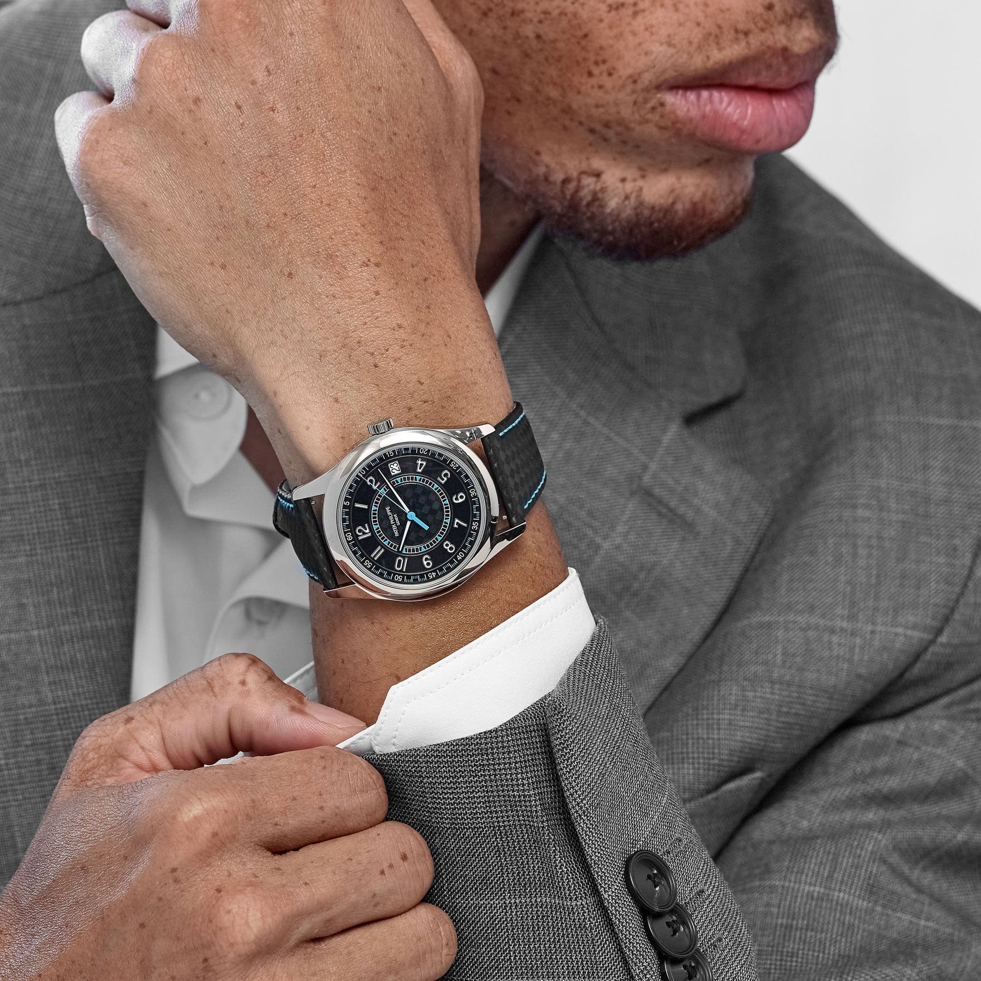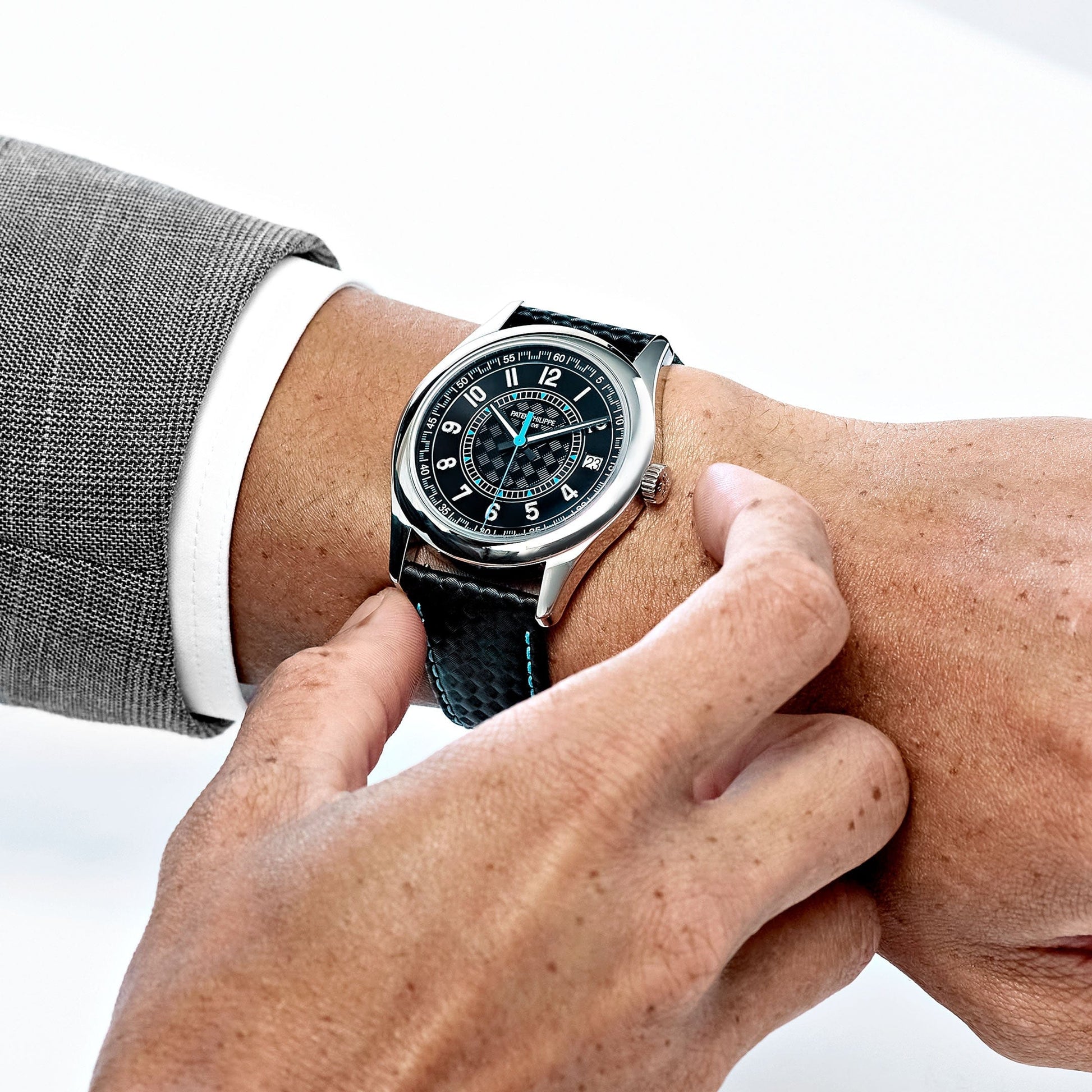 Powered by the self-winding Caliber 26‑330 S C, it offers a 45-hour power reserve and a date display at 3 o’clock. Paired with a blue calfskin strap with embossed fabric pattern and white stitching, the 6007G-011 fuses modern flair with Patek Philippe's timeless craftsmanship.