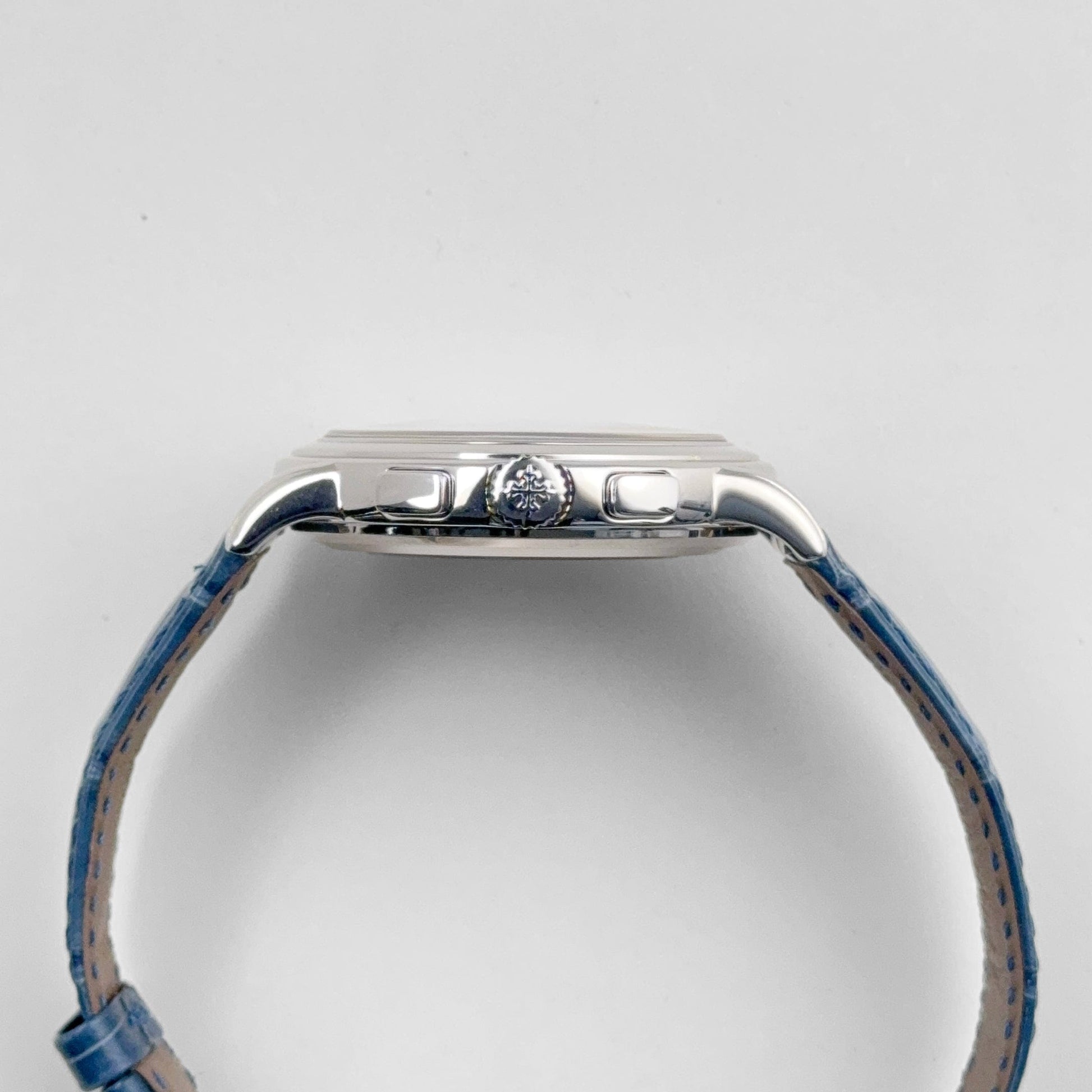 The Patek Philippe Complications 5070G-001 Annual Calendar Chronograph in white gold with a silver dial offers a sophisticated blend of precision and luxury. Featuring an annual calendar and chronograph functions, this timepiece combines technical complexity with refined aesthetics. The white gold case enhances the watch’s elegance, while the silver dial ensures readability with its clean layout. This model is a highly sought-after piece for collectors who value both function and exclusivity in a luxury watch.