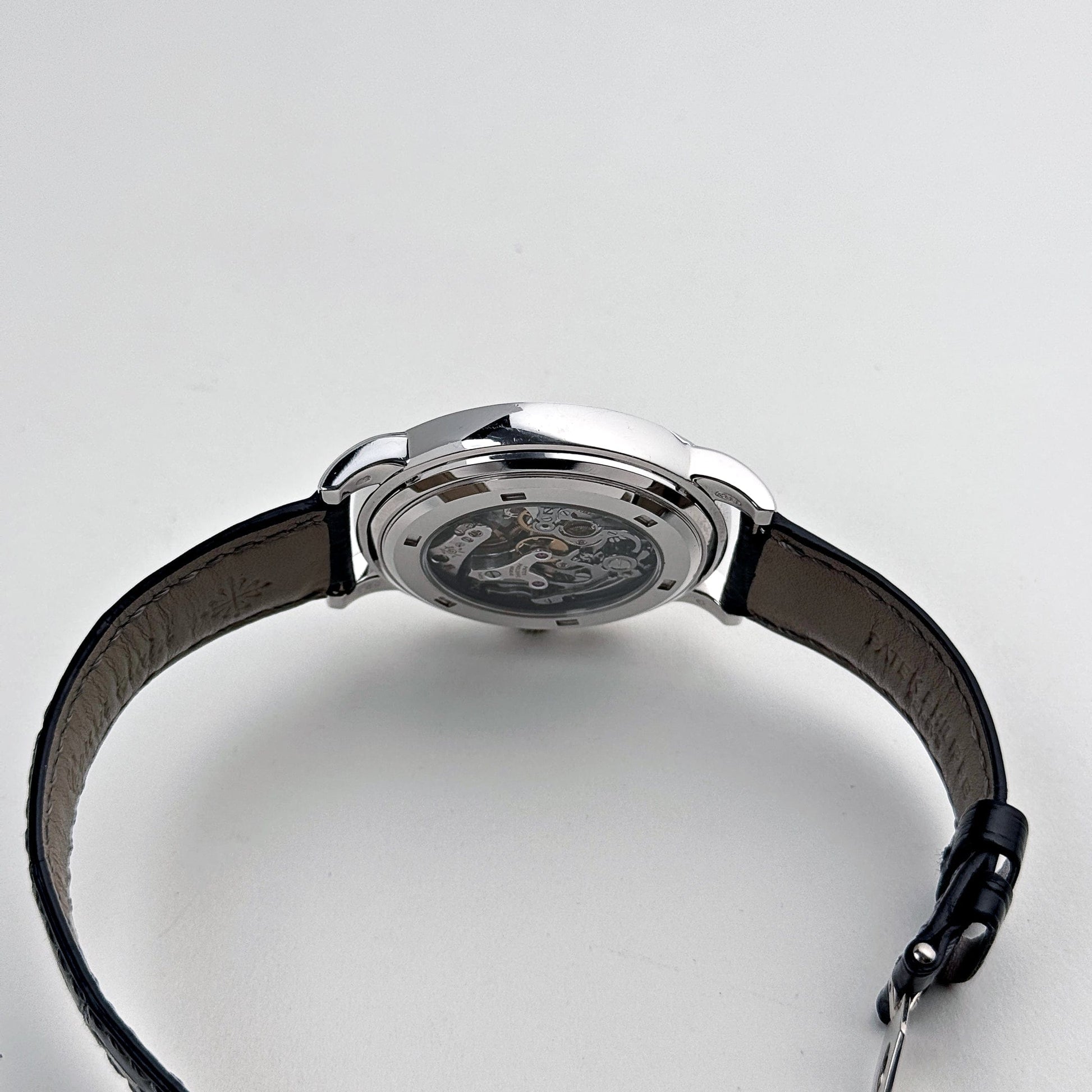 The Patek Philippe Complications 5070G-001 Annual Calendar Chronograph in white gold with a silver dial offers a sophisticated blend of precision and luxury. Featuring an annual calendar and chronograph functions, this timepiece combines technical complexity with refined aesthetics. The white gold case enhances the watch’s elegance, while the silver dial ensures readability with its clean layout. This model is a highly sought-after piece for collectors who value both function and exclusivity in a luxury watch.