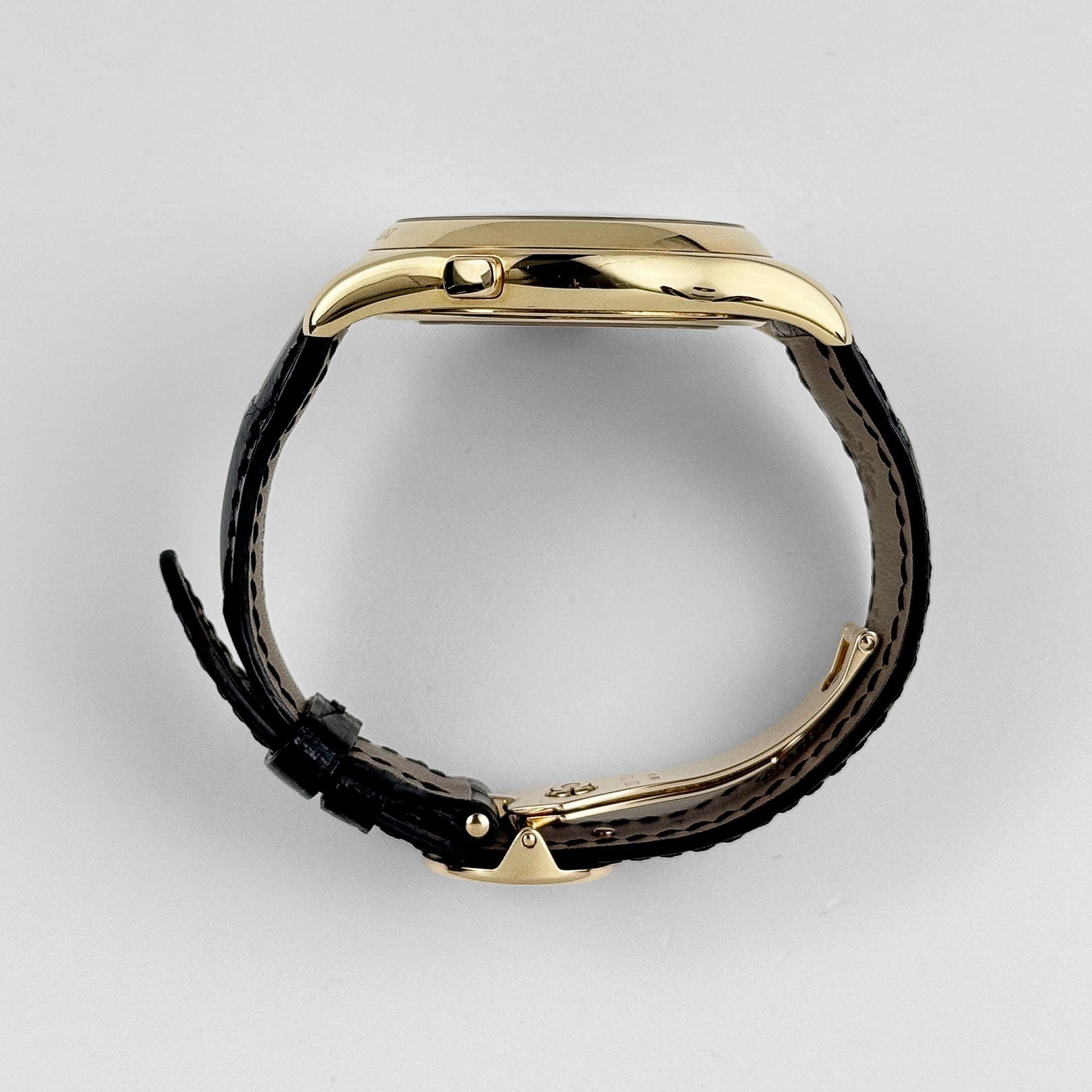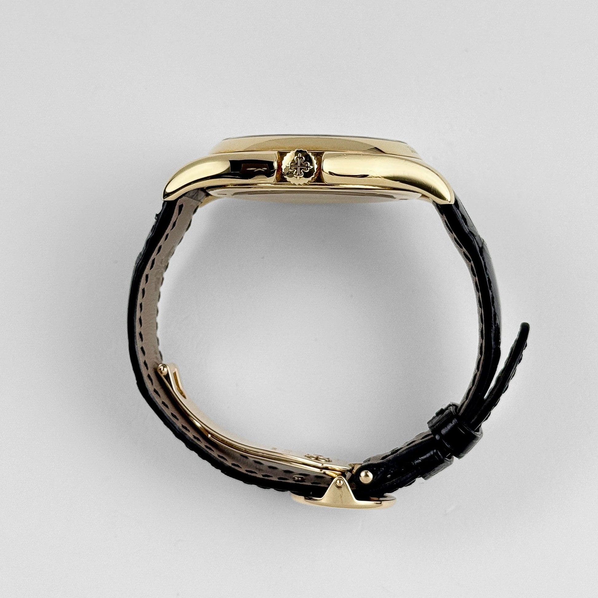 The Patek Philippe Complications 5131J-001 is a masterpiece of craftsmanship and horological art, designed for collectors who value tradition and exclusivity. Crafted in 18k yellow gold, the 38.5mm case showcases timeless elegance, accentuated by the polished bezel and classic curved lugs that embody the brand's refined aesthetic.