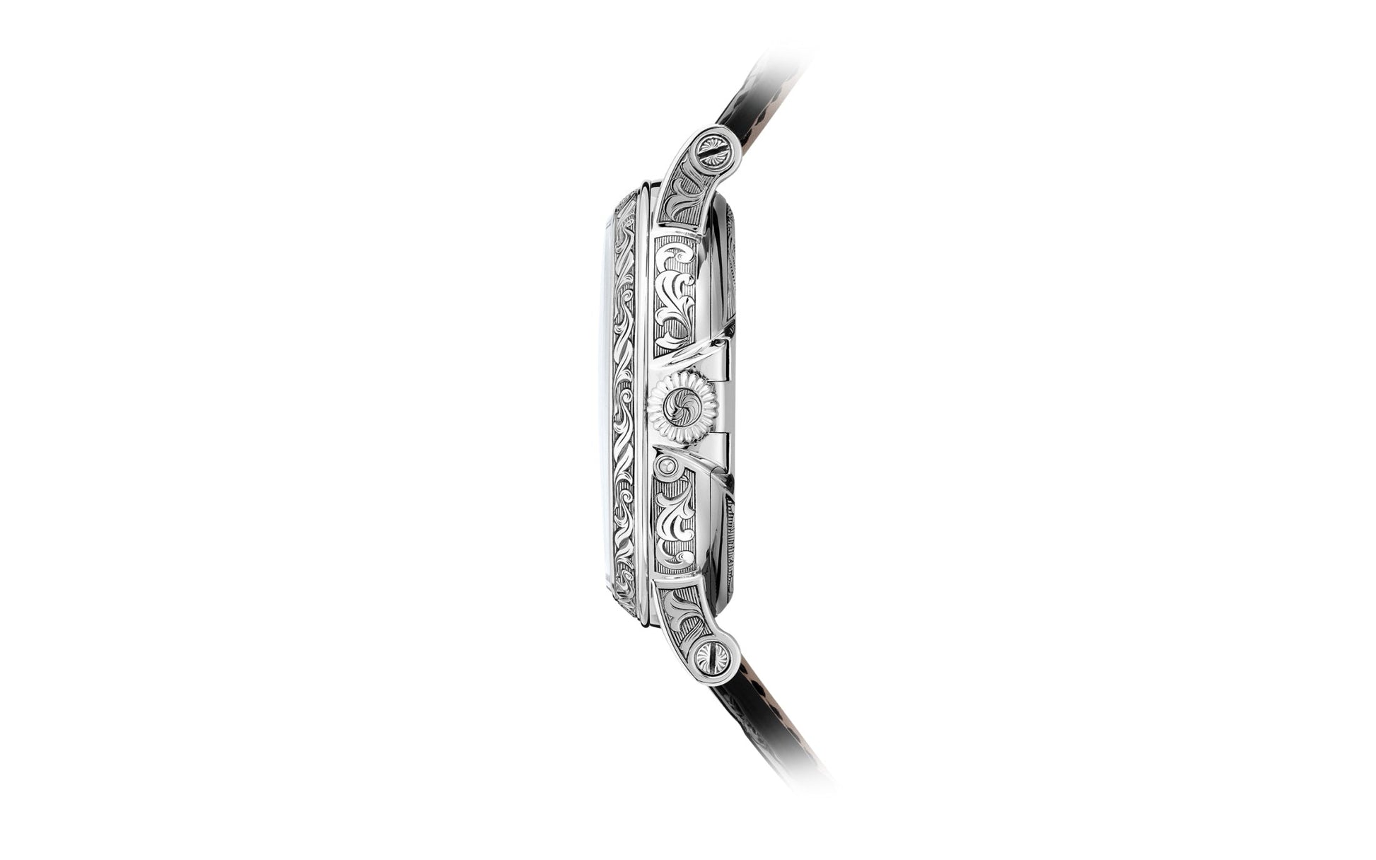 - Clasp: 18k White Gold Hand-engraved fold-over clasp
