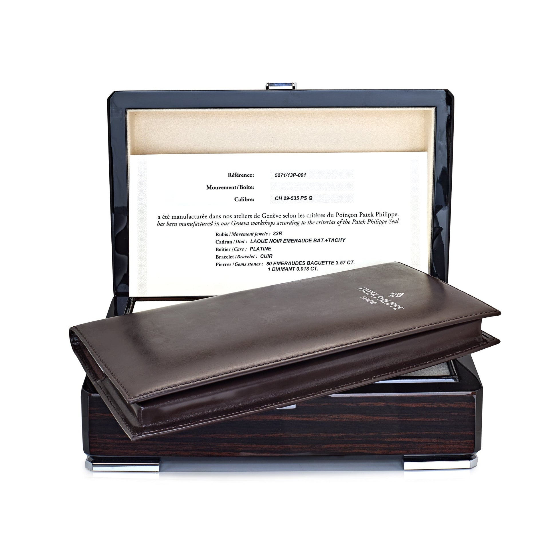 Patek Philippe Grand Complications 5271/13P-001 Perpetual Calendar Moon Phases Platinum Emerald Bezel Black Dial