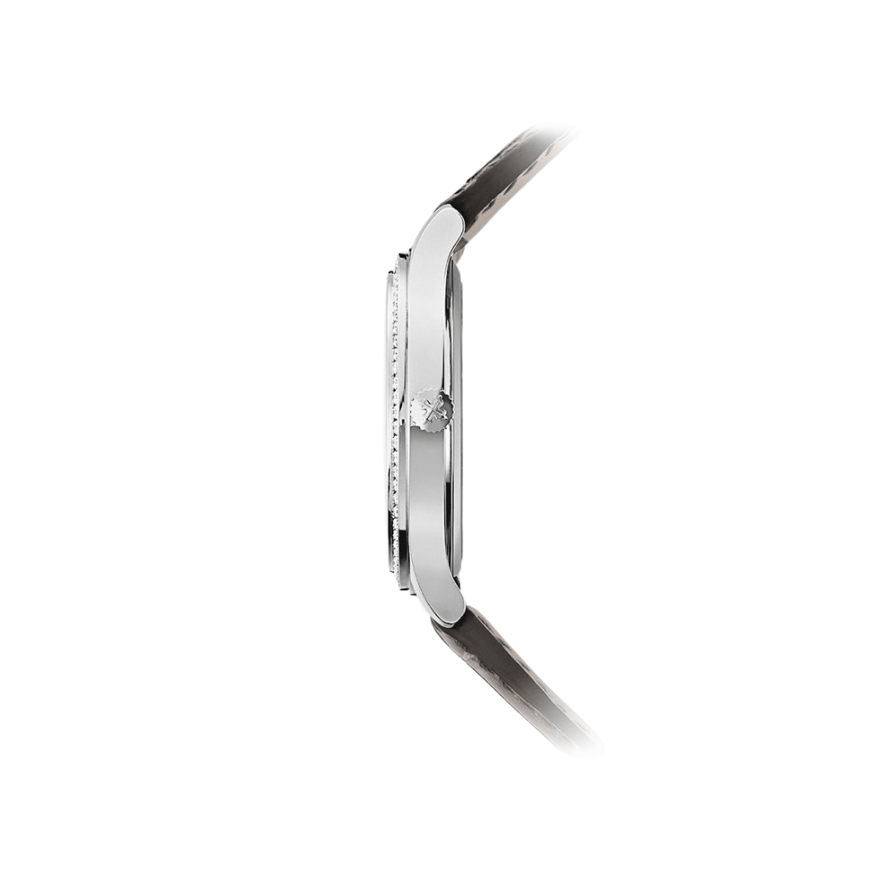 The Patek Philippe Grand Complications 7140G-001 Perpetual Calendar in white gold with a cream dial and diamond bezel exudes timeless elegance and sophisticated functionality. The perpetual calendar complication provides precise tracking of the day, date, month, and moon phase, while the diamond bezel adds a touch of opulence. The creamy dial enhances the refined design, making this piece a coveted addition for collectors who value intricate complications and exquisite craftsmanship.