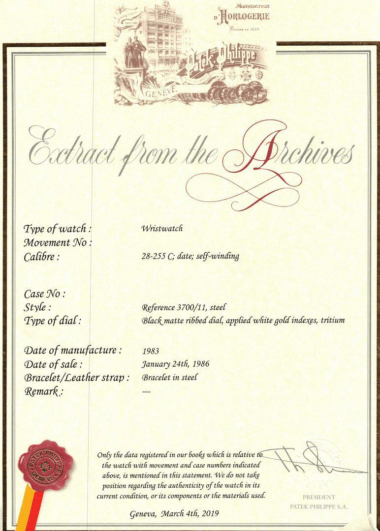 Patek Philippe Nautilus 3700/11 Vintage 'Tiffany & Co.' Limited Edition (1986)