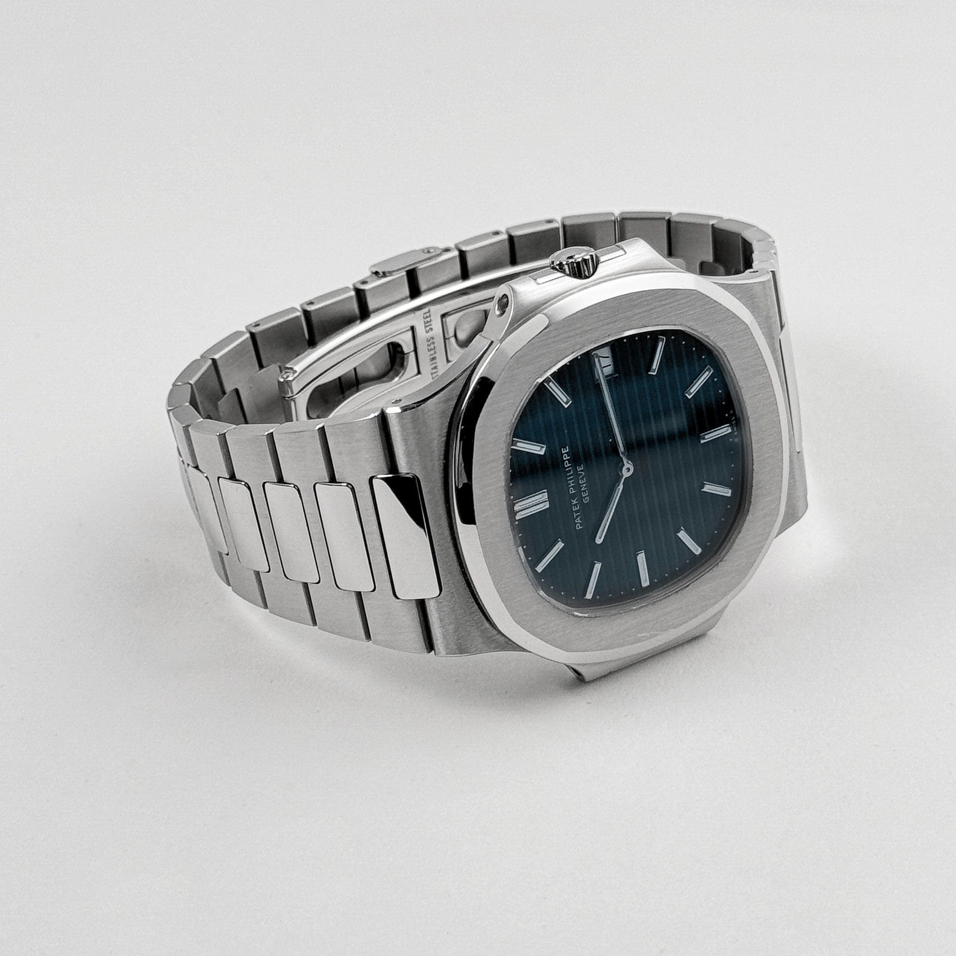 The blue dial, with its horizontal ridges and applied white gold hour markers, has become one of the most iconic in watchmaking history. Slim at just 7.6mm thick, the 3700/1A houses the ultra-thin automatic caliber 28-255 C. Revered by collectors, the 3700/1A set the foundation for the luxury sports watch category and remains one of the most important and collectible Patek Philippe references of the 20th century.