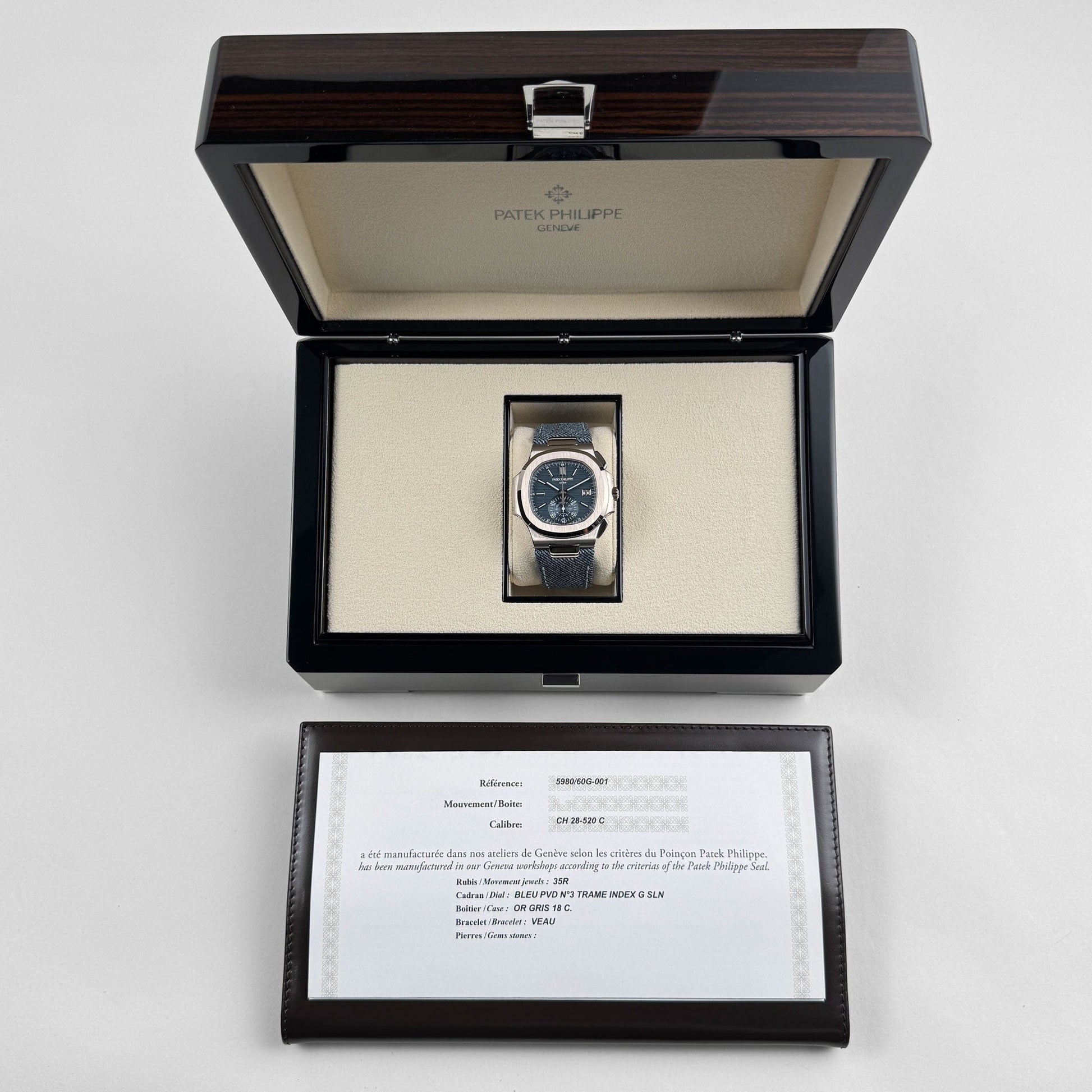 Patek Philippe Nautilus 5980/60G-001 'Denim' Flyback Chronograph White Gold Blue-Gray Dial (2024)