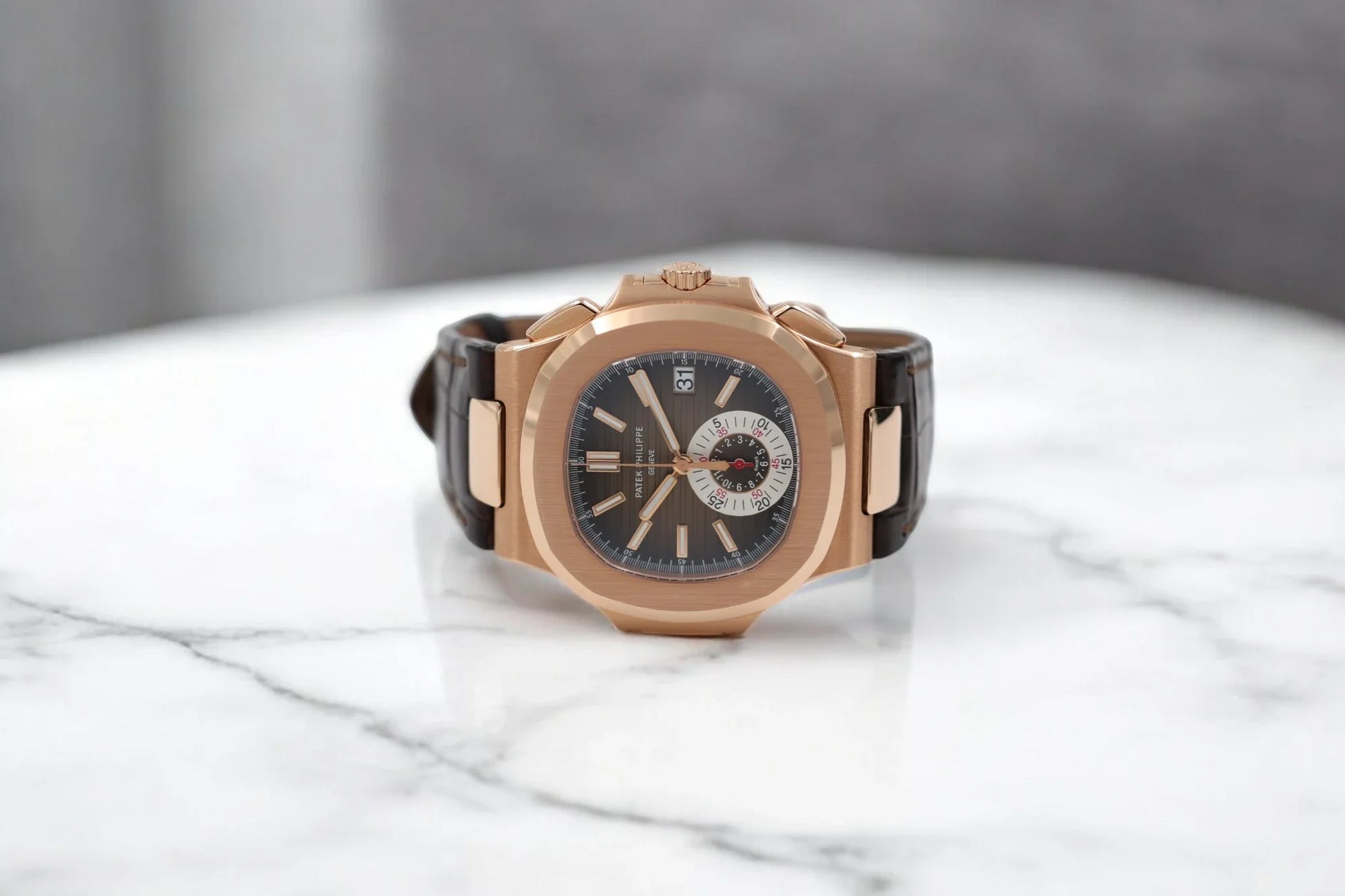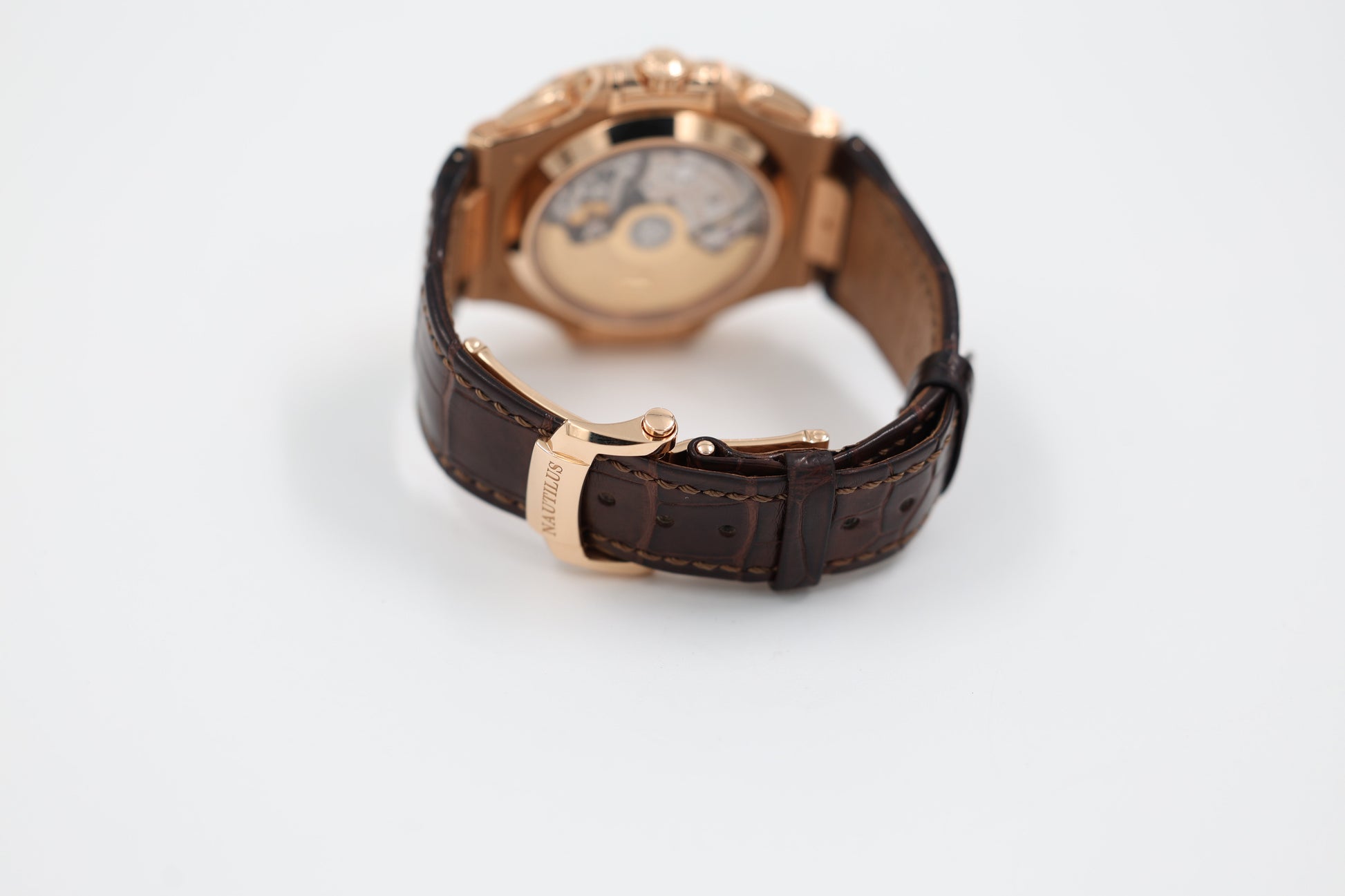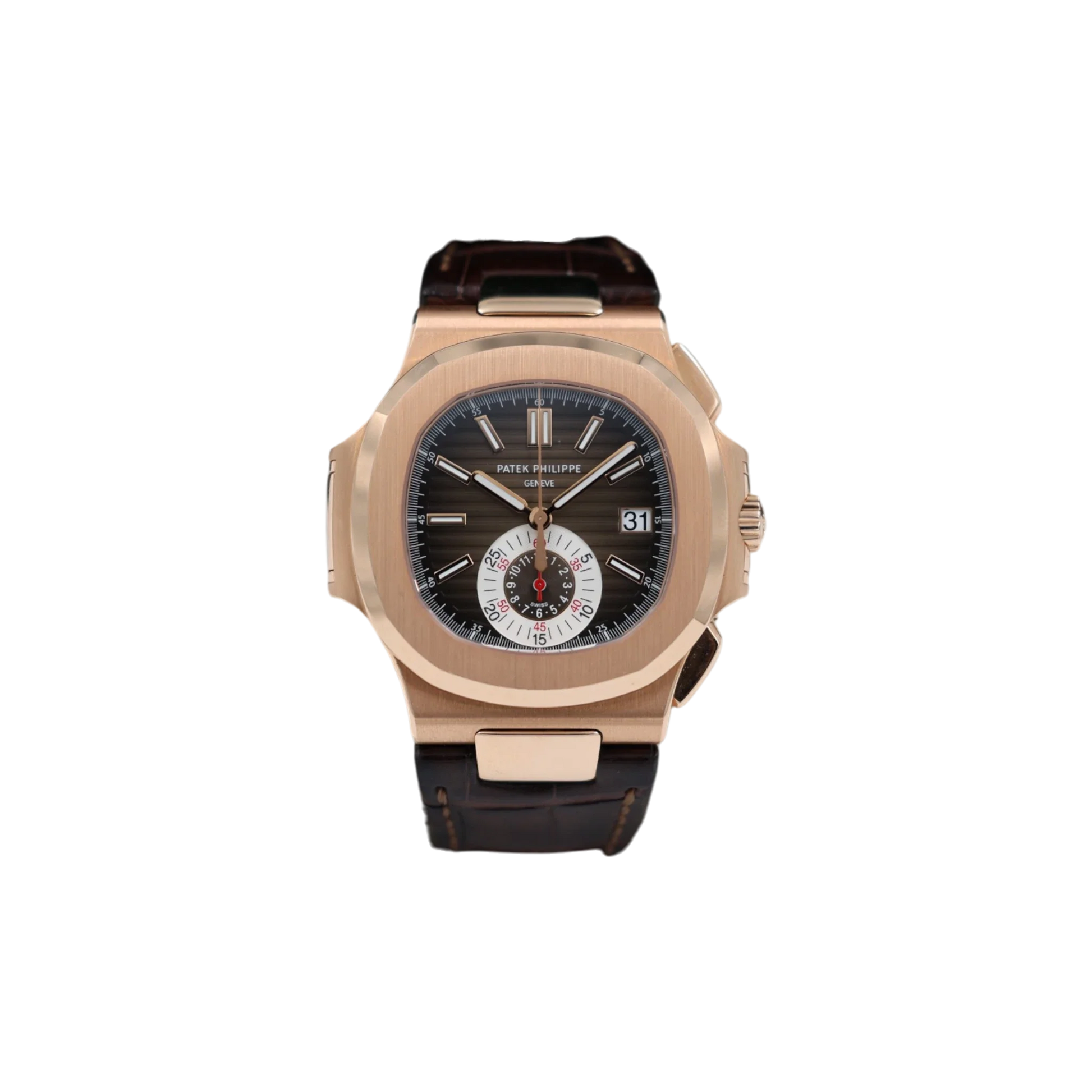 Fitted with a hand-stitched brown alligator leather strap and matching rose gold fold-over clasp, the Nautilus 5980R-001 is the perfect blend of sporty character and timeless luxury—ideal for discerning collectors and investors alike.