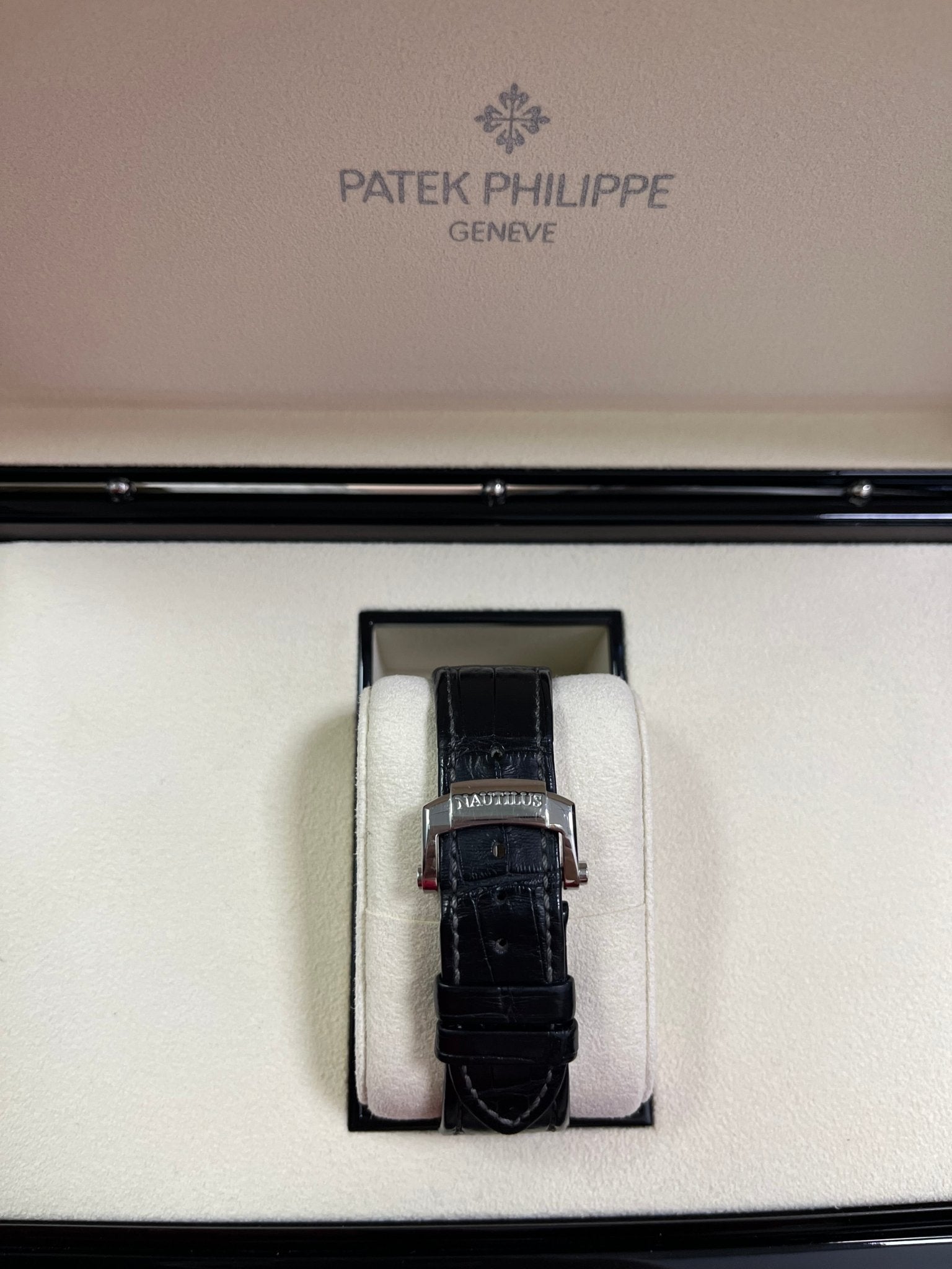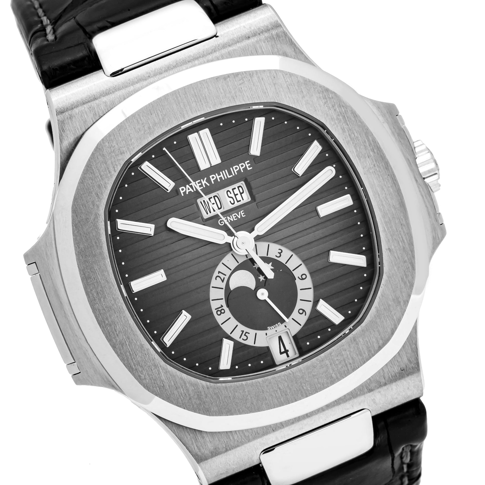 Patek Philippe Nautilus Stainless Steel Moon Phase Black Leather Strap (Ref#5726A-001)