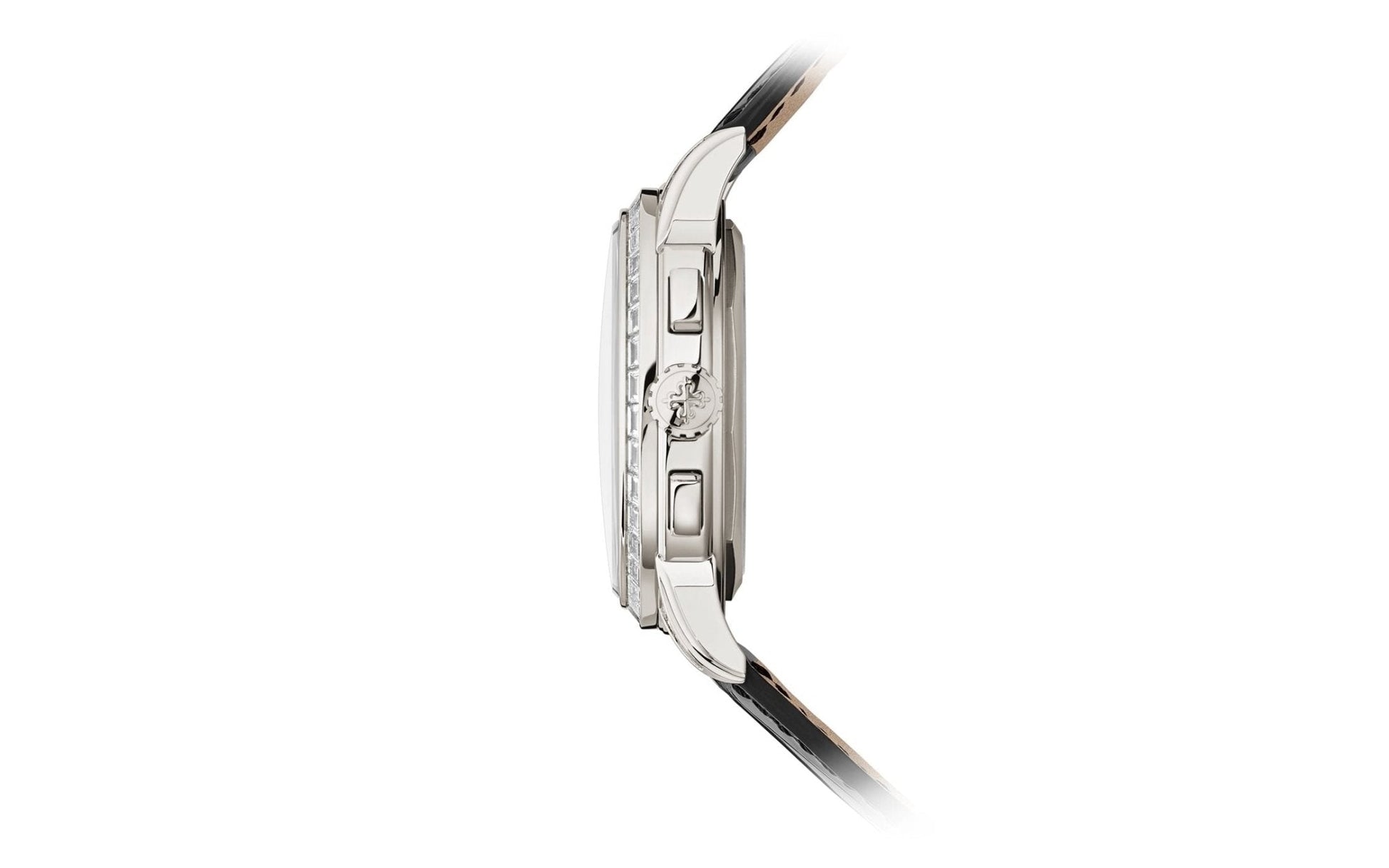 Bezel and lugs set with 58 baguette diamonds (~3.63 ct). Fold-over clasp set with 22 baguette diamonds (~0.97 ct).