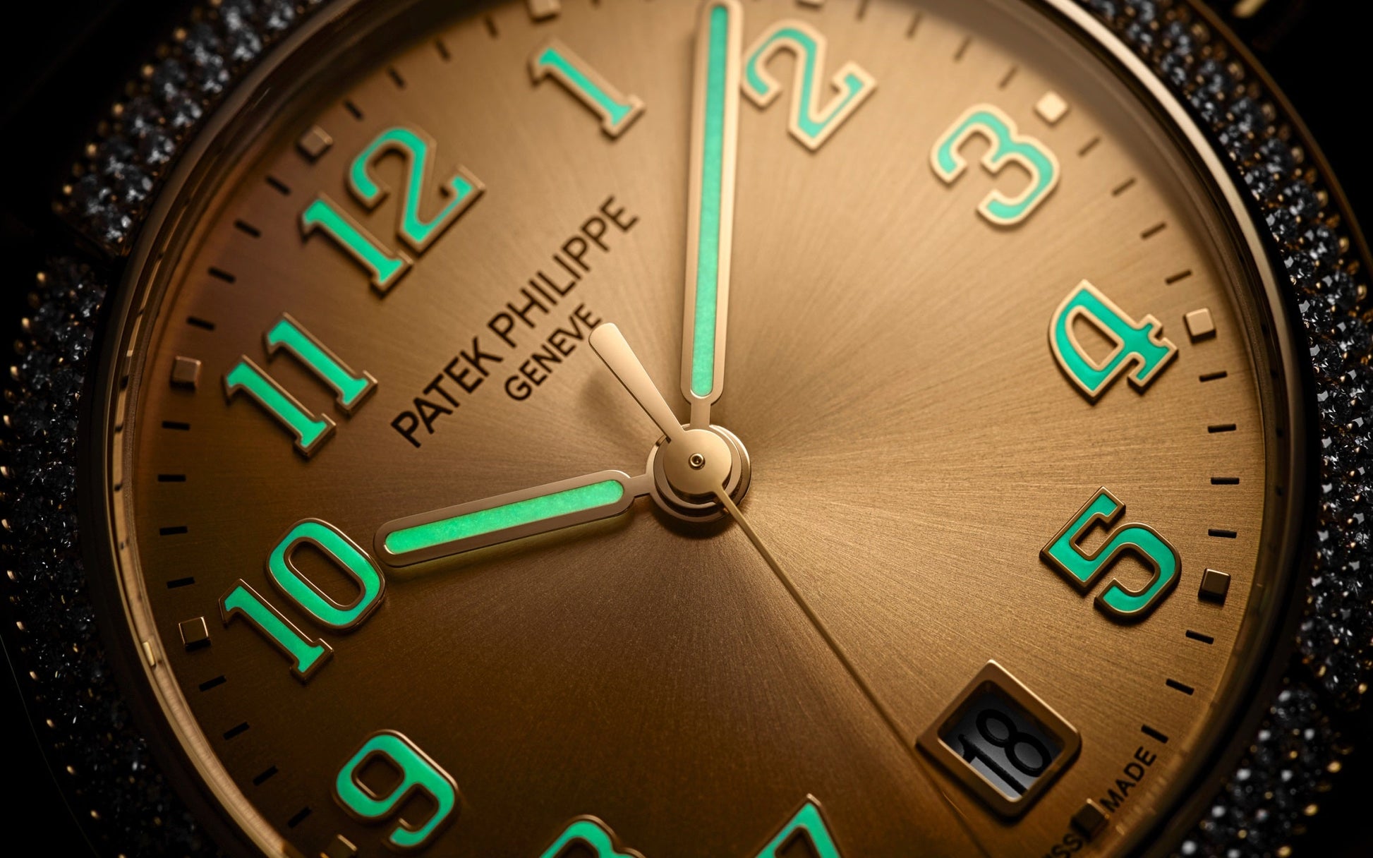 New Patek Philippe Twenty~4 Automatic luxury watch, 36mm, 18k Rose Gold with 160 diamonds ~0,77ct, Ref. 7300/1200R-011. Reliable and modern, feminine and elegant meticulously crafted is truly a sight to behold and a joy to wear. Despite its sophistication, this watch is presented as a casual chic that can be worn every day - a kind of all-rounder. The first model in the collection to feature a round case that is 10.05mm thin yet comfortable and has a modern look on the wrist. The elegant Rose-gilt dial with sunburst finish along is eye-catching. It features sporty pilot-style 18k Rose Gold Arabic numerals with luminescent coating. The time indicated by large polished luminous nautilus-like (rounded batons) hour and minute 18k Rose Gold hands, ensuring perfect legibility even in the dark. These are complemented by a slim and elegant 18k Rose Gold second hand (Sweep seconds hand). As a classic time and date watch, this model has a date window at 6 o'clock. Thin Brown minute markers with 18k Rose Gold squares every 5 minutes run along the outer edge of the dial. A polished 18k Rose Gold crown with a ribbed edge for a comfortable grip and the Patek Philippe logo is the finishing touch to the perfect picture. The dial is covered with a scratch-resistant sapphire crystal. A Sapphire Crystal case back, also made allows you to see the magical workings of the movement. The elegant highlight of model is the fixed sparkling 18k Rose Gold bezel set with 160 diamonds (~0,77ct) flawless. In addition, it is much more complex than just two rows of diamonds surrounding the dial. The bezel follows the curvature of the case and is raised at 12 and 6 o'clock, creating continuity with the bracelet. The model is equipped with a Patek Philippe Caliber 324 S C, with a self-winding mechanical movement containing 29 Jewels, with a power reserve of min. 35 hours - max. 45 hours. This beautiful watch is presented on a seamlessly integrated into the case of the 18k Rose Gold bracelet, and the steps of the links follow the steps of the lugs, giving the watch a more barrel-shaped silhouette. The same applies to the module between the lugs, which follows the shape of the center link. The bracelet are fastens with Patek Philippe's patented polished 18k Rose Gold folding clasp and engraved with the Calatrava cross. Opening the clasp reveals the engraved Patek Philippe logo with the word GENEVE. Water resistant up to 30m/99ft (3 ATM).