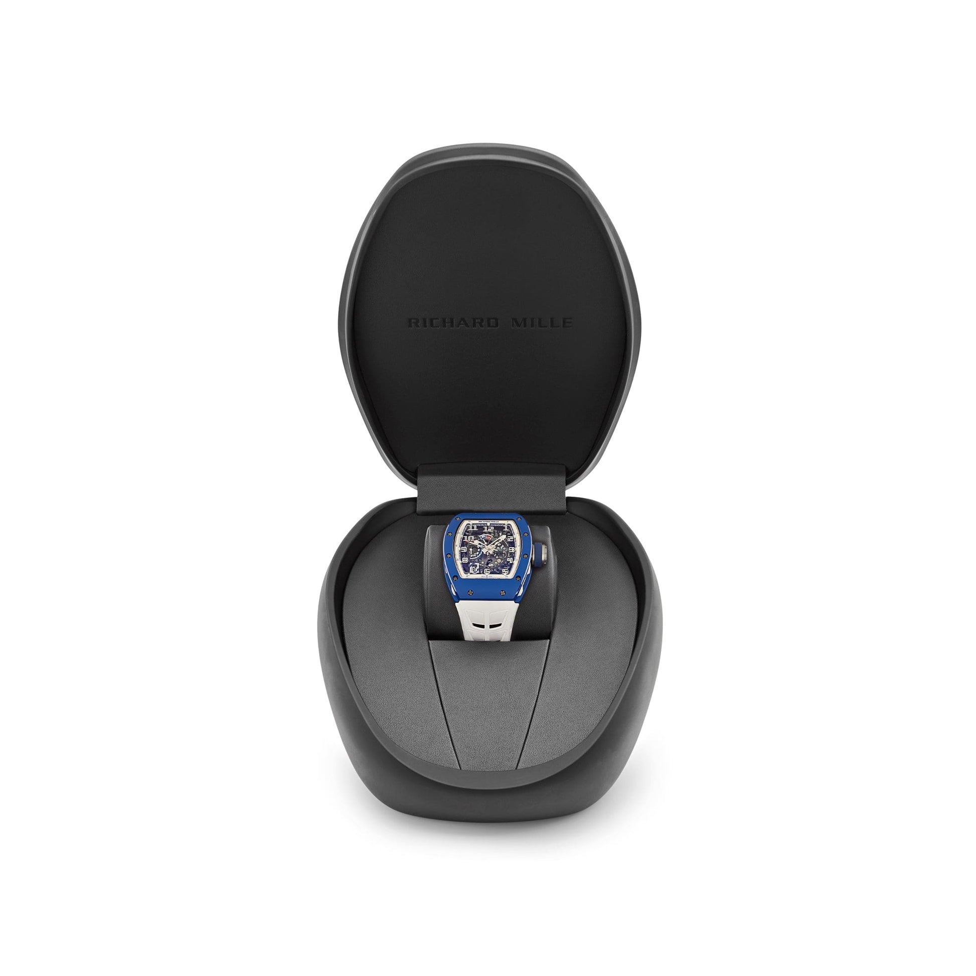 Paired with a matching blue rubber strap, this boutique-exclusive RM 030 is a striking addition to any collection, combining technical mastery with the rarity and exclusivity synonymous with Richard Mille.